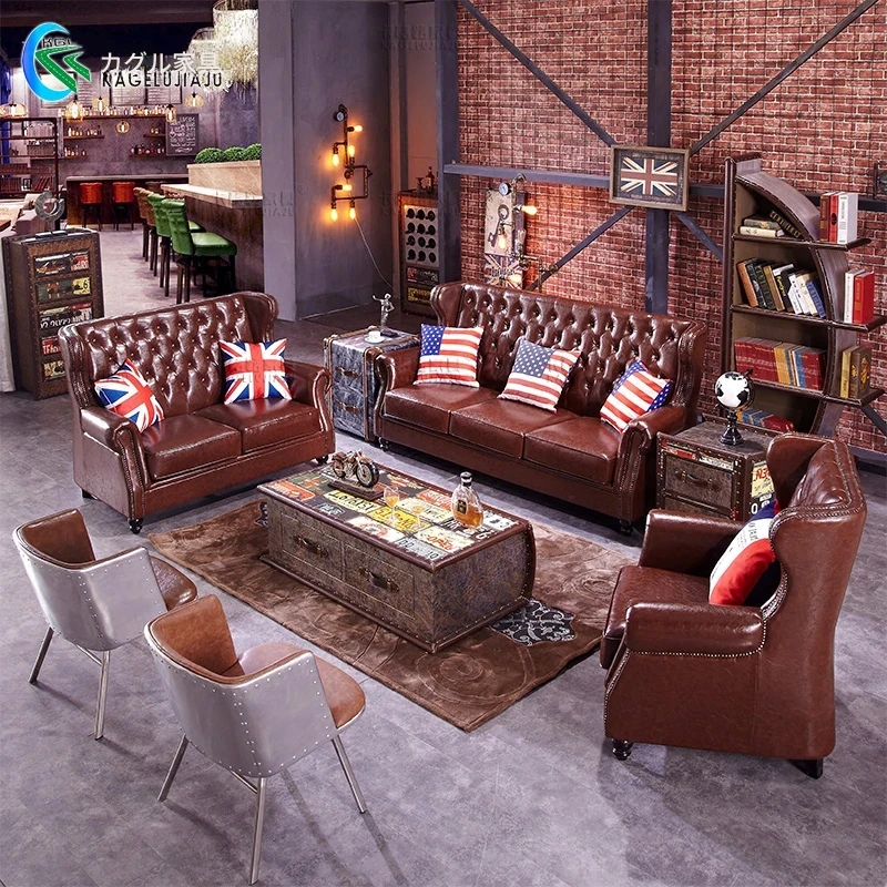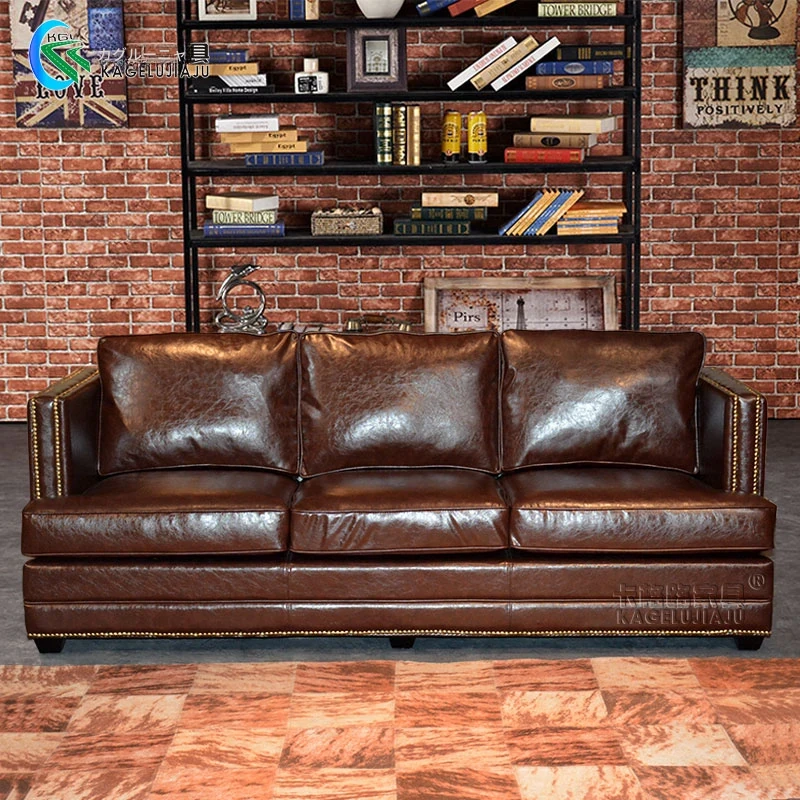 アメリカンレトロ工業風 本革ソファ - 一人掛け・二人掛け・三人掛けに対応、小型欧風リビングに最適な高級牛皮製、スタイリッシュなデザインでおしゃれな空間を演出!