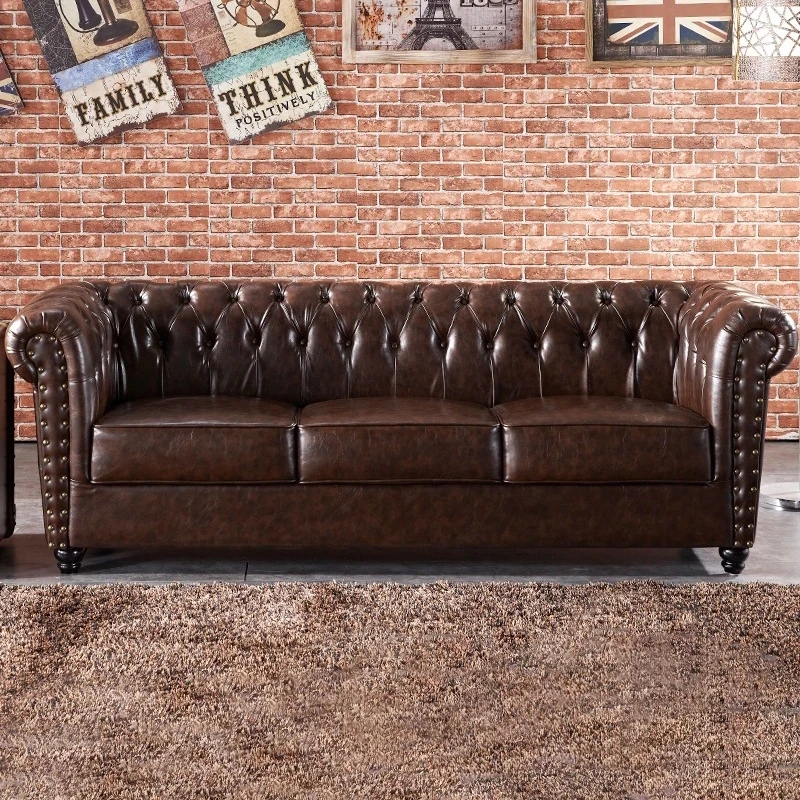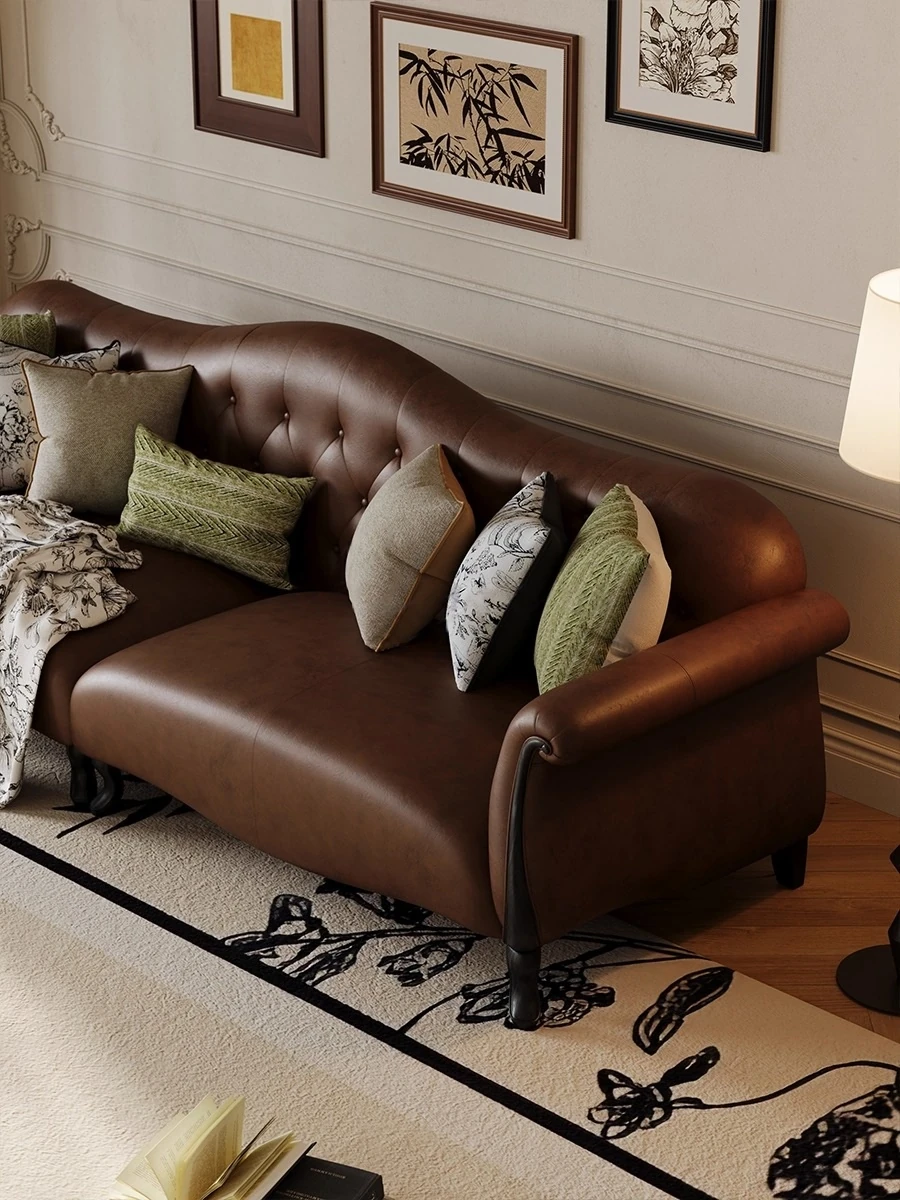 アンティーク風のアメリカンレトロソファー - 高級感溢れるヴィラやスイートにぴったりのスタイリッシュなリビングルーム用ソファ!トレンドのストレートデザインで、心地よい居心地を提供します。