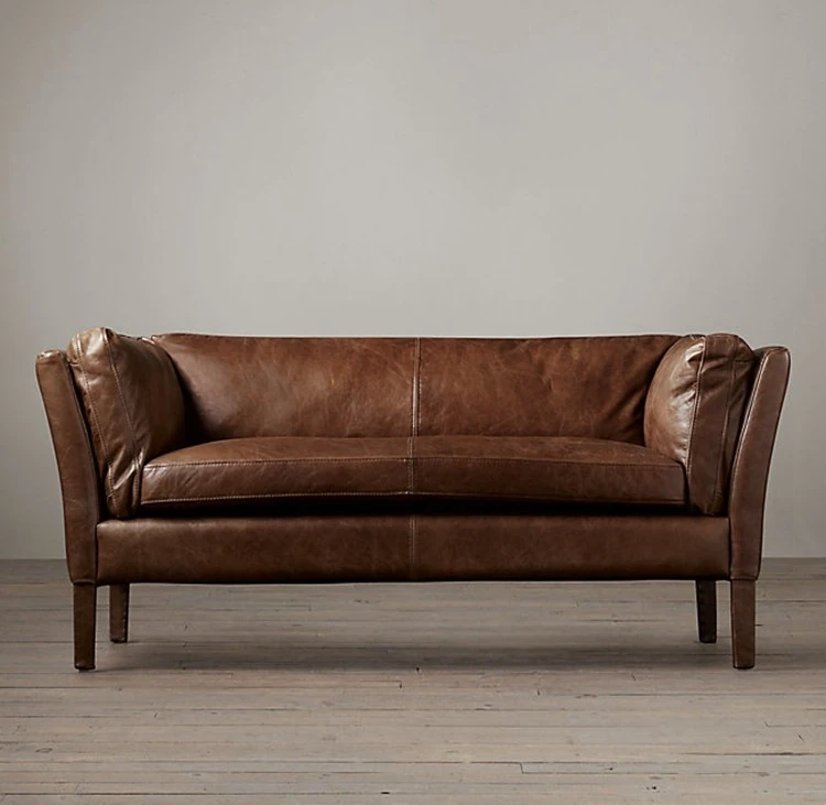 アメリカンクラシック小型オフィスソファー|レトロデザインの商用カフェ用ソファ|直線的なリビングルーム用本革ソファで、スタイリッシュな空間を演出!