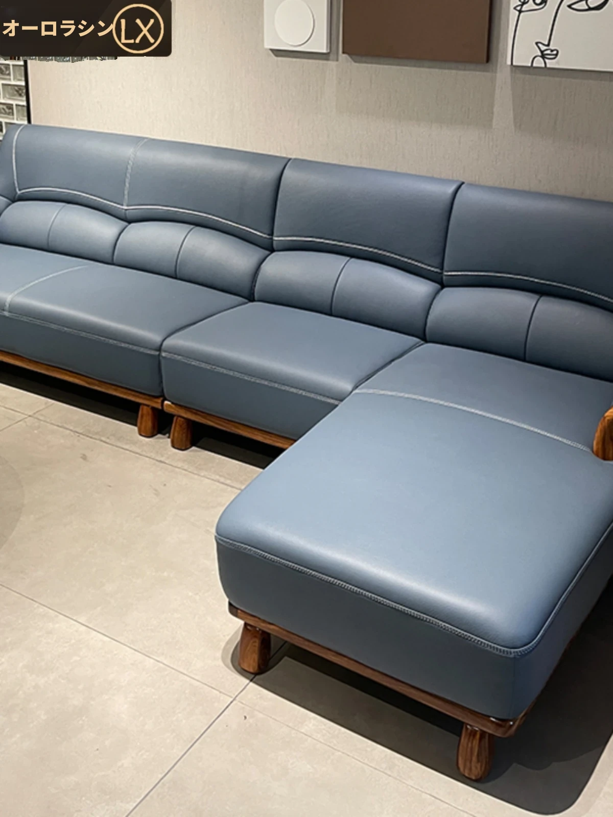 現代新中式軽奢イタリアンウッディー本革大平層ヴィラ用貴妃角ソファセット - 優雅なデザインで、贅沢なひとときを演出します。