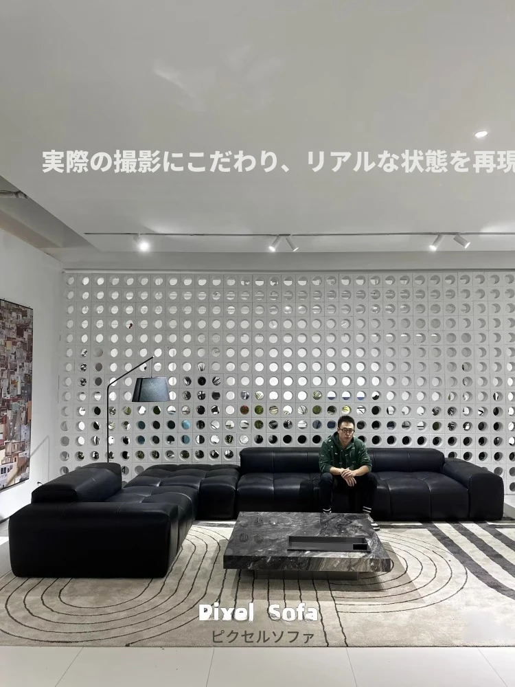 Sabaデザイナーのピクセル本革リビングソファ - イタリアンミニマリズムの傑作、上質なトップグレインレザー使用のモジュラーコンビネーション!あなたの空間を洗練された雰囲気に。