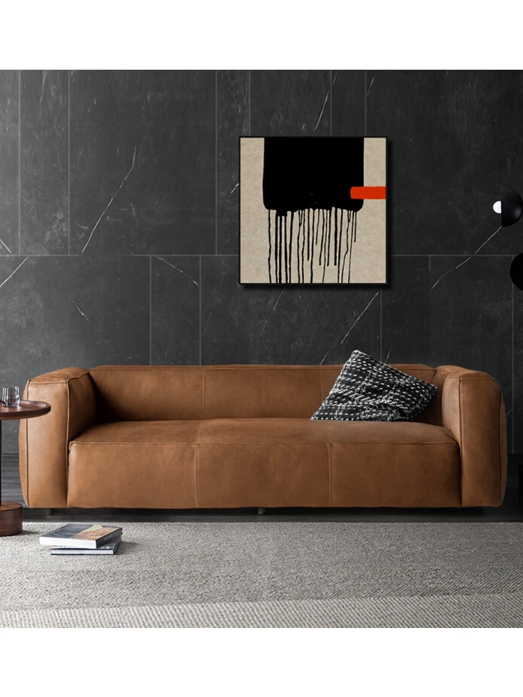 イタリアンミニマルレトロ本革ソファ - 高級オイルワックス牛革製のビーンバッグソファ。クラシックなヴィラのリビングやシガーバーに最適!洗練されたデザインで、極上のくつろぎを提供します。