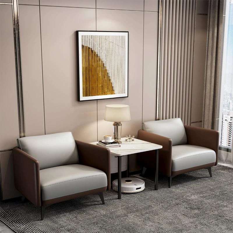 北欧スタイルのシンプルでおしゃれな一人掛けソファ&コーヒーテーブルセット - ビジネスホテルや商談スペースに最適!くつろぎのひとときを提供する理想的な組み合わせ。