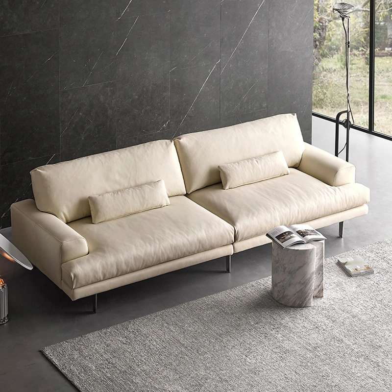 北欧スタイルのイタリア製本革ソファ - シンプルで洗練されたデザインのハーディ浮遊ソファ、クリームホワイト色でリビングを格上げ!
