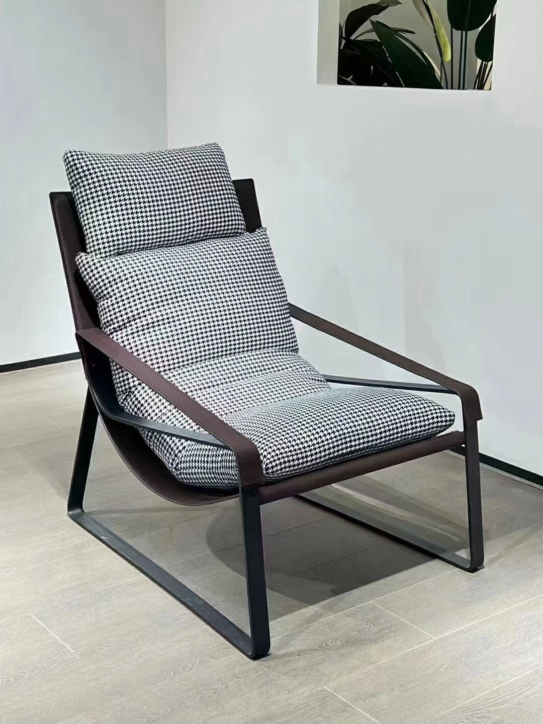 千鳥格デザインの一人掛けソファ椅子 - イタリアンミニマルスタイルのリラックスチェア。リビングやバルコニーにぴったりな軽やかなラグジュアリー感。デザイナーによる特別な一脚をお楽しみください!