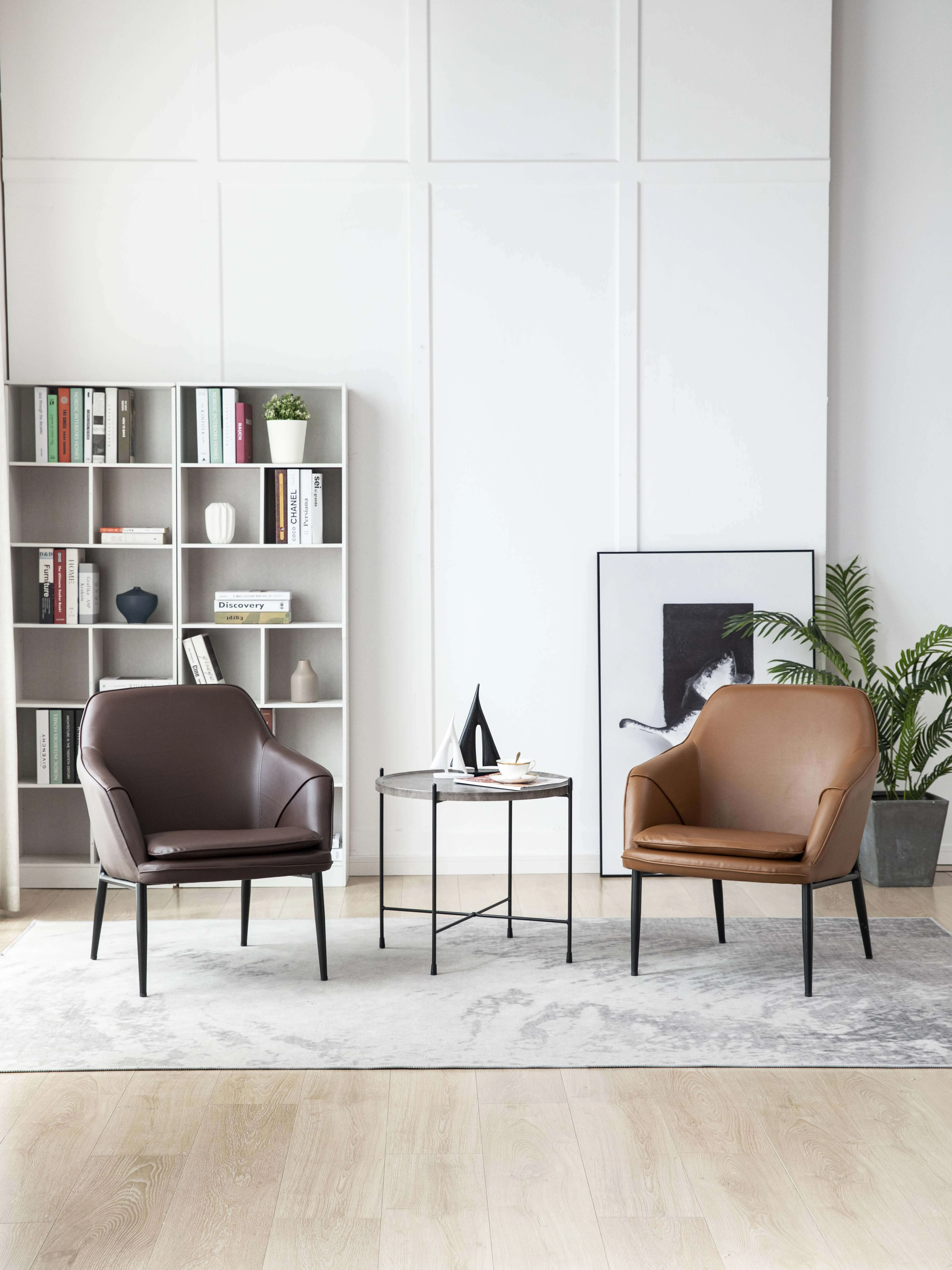 シンプルでおしゃれな回転式本革ソファチェア - モダンなリビングや書斎、バルコニーにぴったりの快適な一人用チェア。取り外し可能なデザインでお手入れも簡単!老虎椅子スタイルで、あなたの空間を引き立てます。