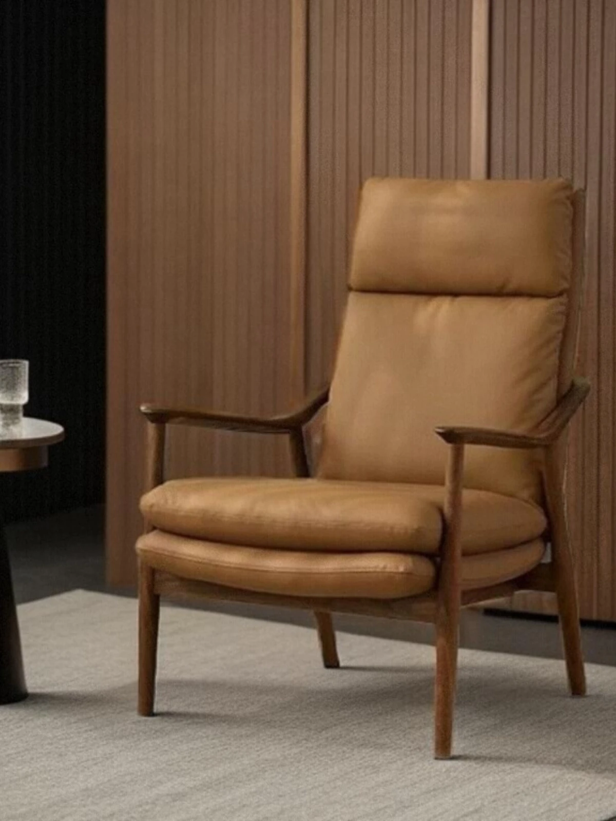 Vintage American Tiger Chair - Single Wooden Leather Sofa for Living Room & Balcony, Retro High-Back Lounge Chair for Bedroom, Perfect for Relaxation and Style