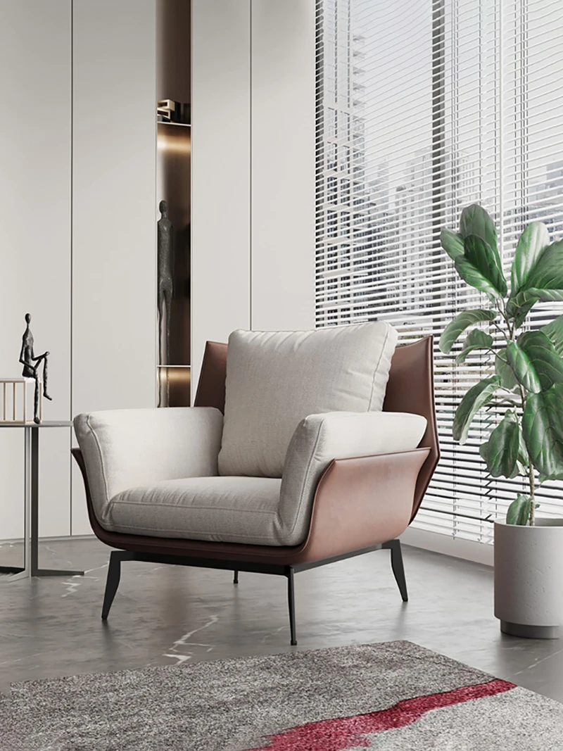 Italian Minimalist Leisure Sofa Chair – Designer Lounge Seat for Living Room, Luxury Balcony Accent, Creative Ultra-Fine Leather Single Chair, Trendy and Stylish