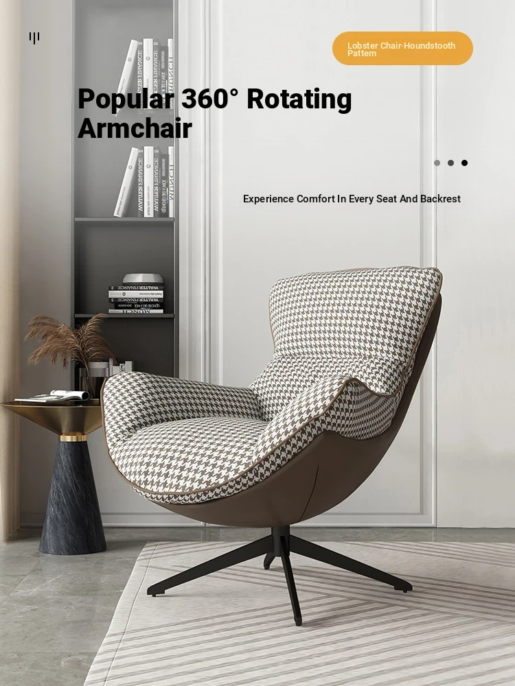 Chic Houndstooth Swivel Armchair – Stylish Single Sofa for Living Room, Balcony, and Relaxation. Embrace Italian Minimalism with this Trendy Lounge Chair! Perfect for Cozy Spaces.