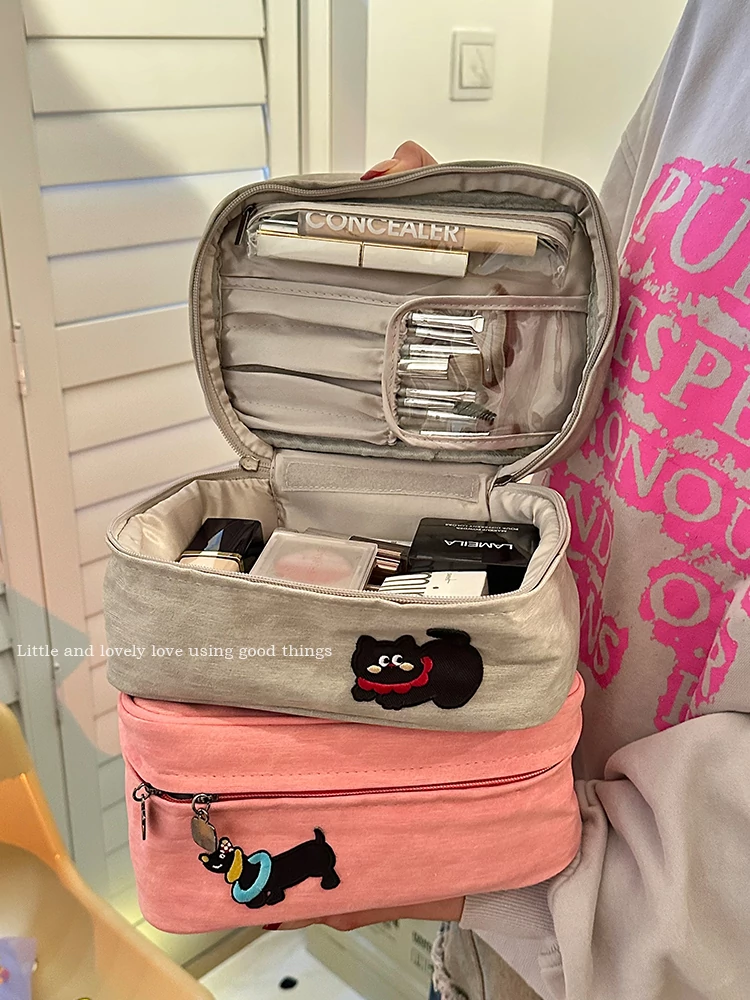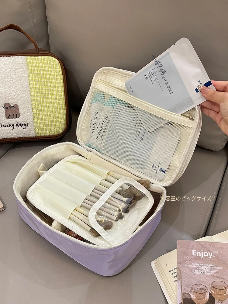 2025年新作!大容量手提化妆包 - 旅行・出張に最適な便利な二合一収納ポーチ!洗面道具やスキンケア用品もスッキリ整理整頓!