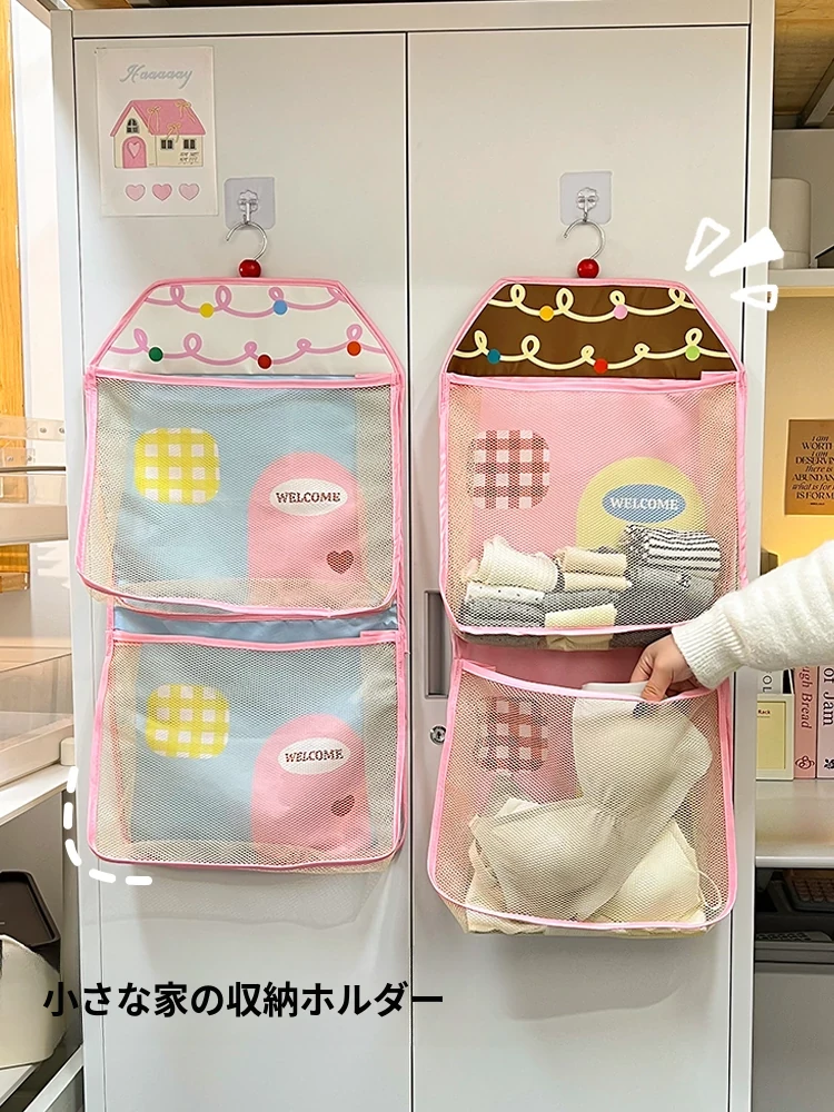「宿舎やクローゼットの扉にぴったり!多層式収納ポケットで下着や靴下をスッキリ整理できる!便利なネットバッグで、毎日の生活をもっと快適に!」