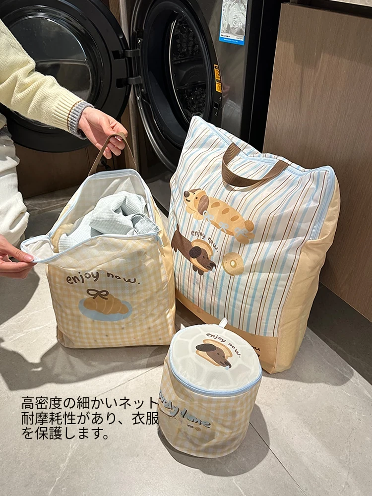 かわいいパン犬の洗濯ネットセット!大容量で洗濯機対応、衣類や下着をしっかり守る変形防止ネットバッグ。おしゃれで機能的、洗濯も楽しくなる!