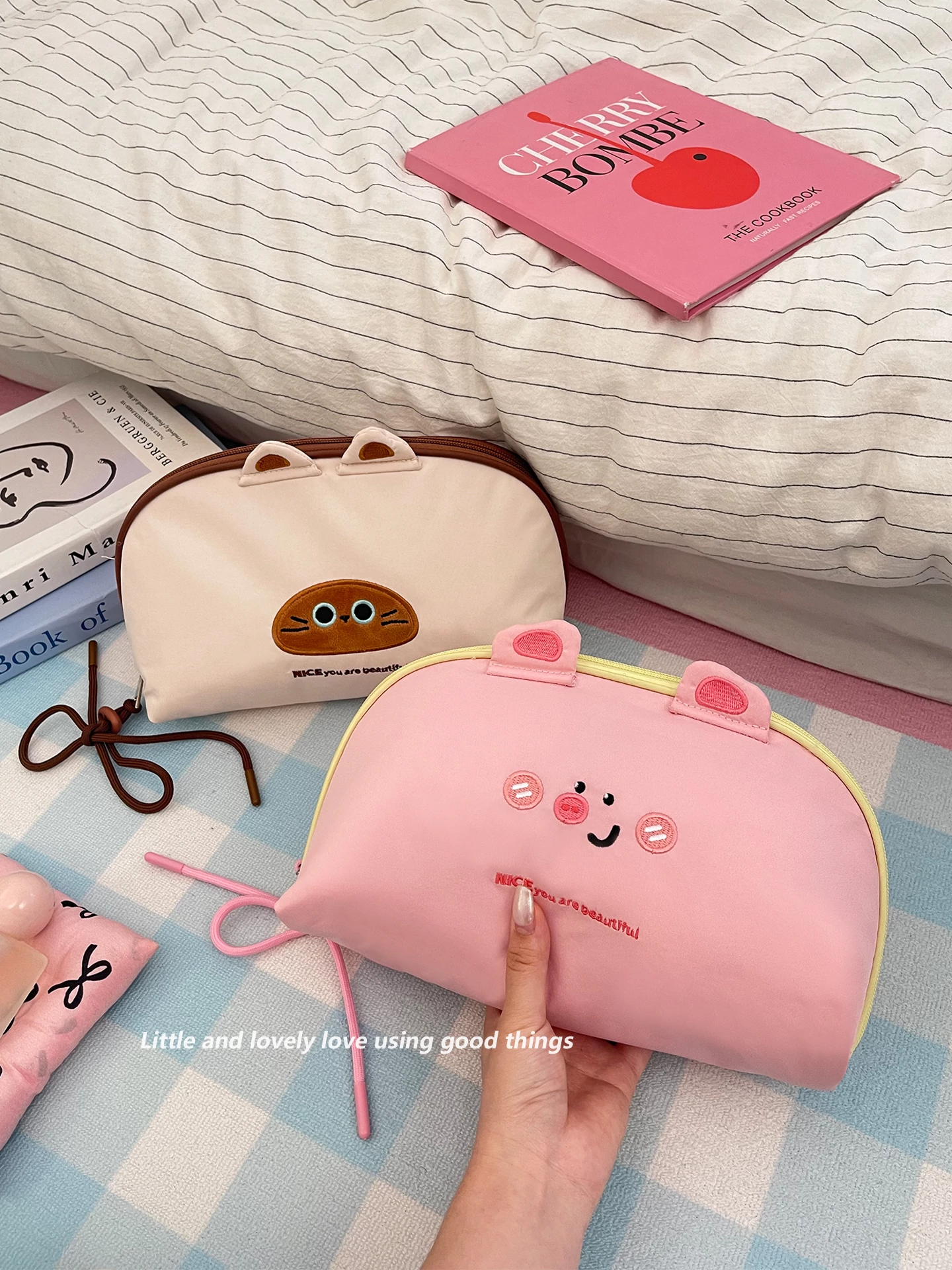 2025年新作!可愛い化粧ポーチ - お出かけにぴったりの大容量!メイクブラシやリップ、ちょっとした小物も分けて収納できる便利な仕切り付き!あなたの美しさをサポートします!