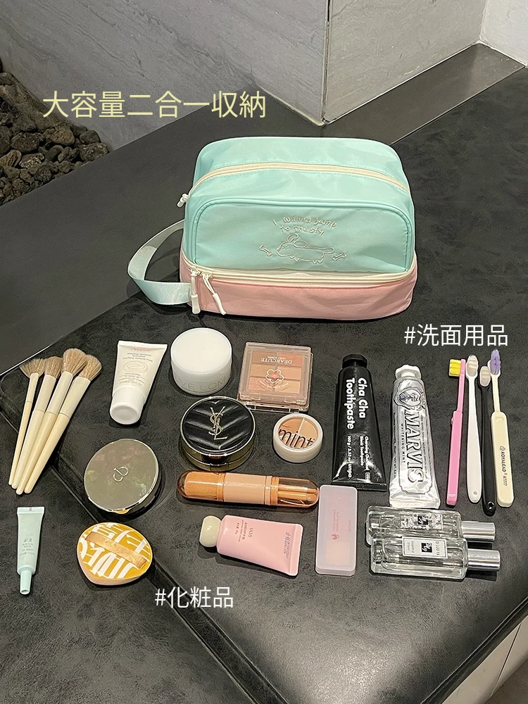 2025新作!大容量・双層乾湿分離化粧ポーチ - 旅行に最適な持ち運び便利な女性用メイクアップ&洗面用バッグ!おしゃれなデザインで、あなたの美をサポートします。