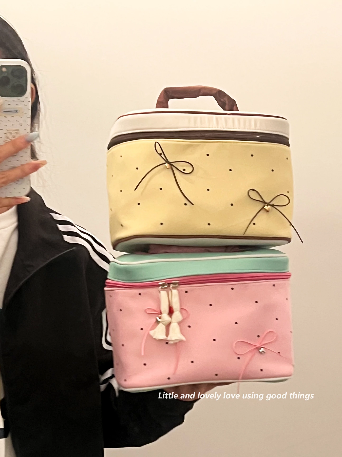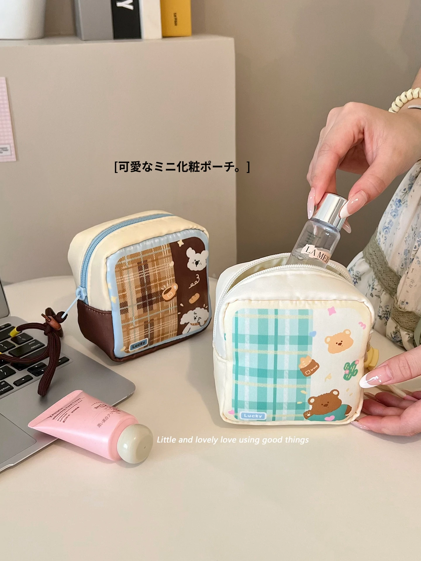 かわいいミニ携帯化粧ポーチ - お出かけに最適!リップや生理用品、雑貨を分けて収納できるエレガントなデザイン。小さくても機能的で、あなたの魅力を引き立てます!