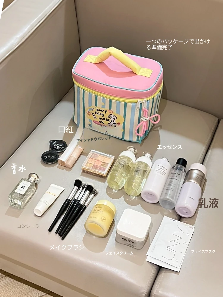 ダイナミックなドパミン大容量メイクアップポーチ!高級感あふれるデザインで、旅行に最適なポータブルな仕分け収納。スキンケア製品や洗面用具をスマートに整理できるハンドバッグスタイル!