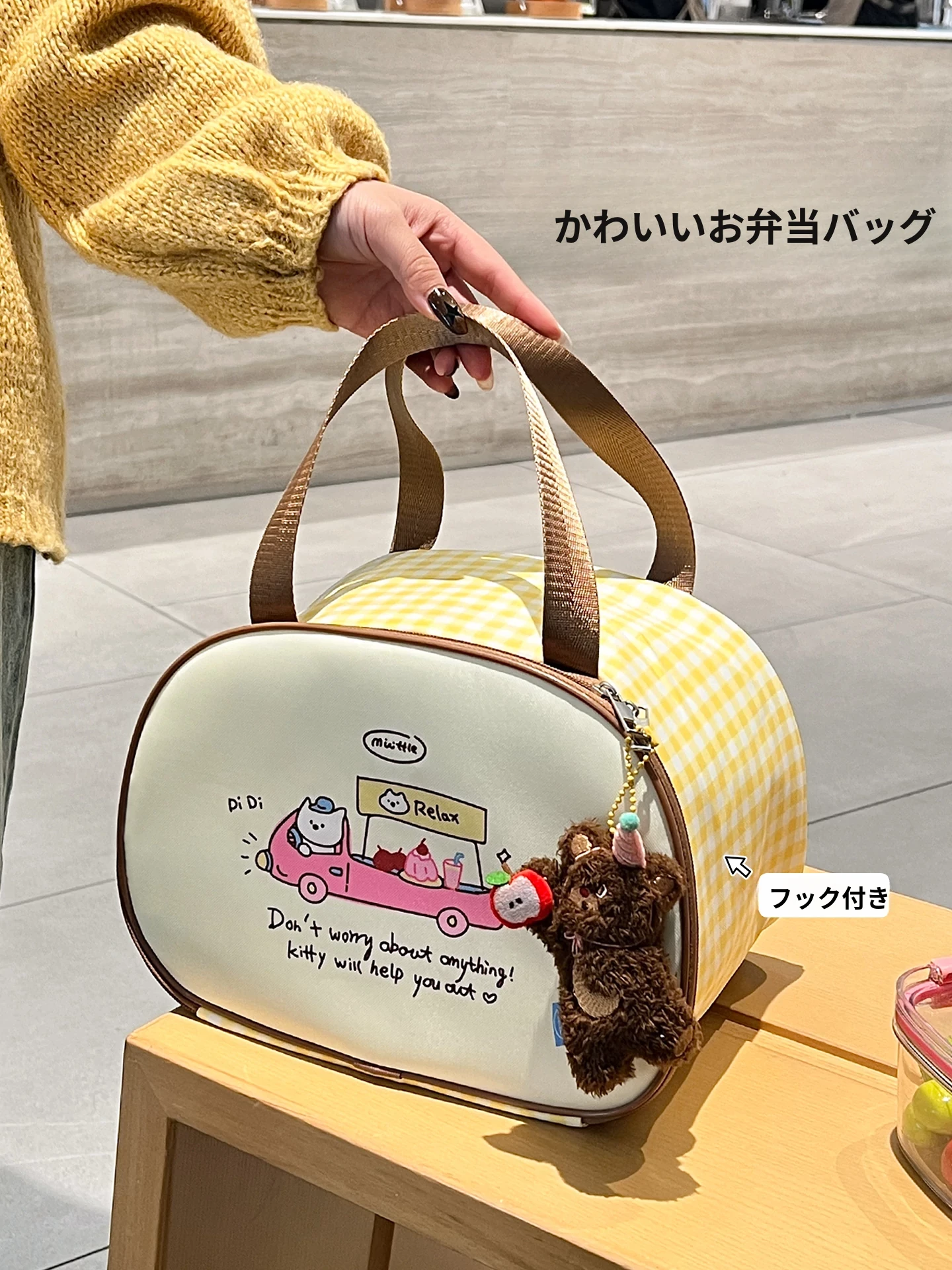 可愛い大容量保温バッグ|持ち運び便利で油汚れ防止!学生やオフィスワーカーに最適な高デザインのお弁当バッグ!美味しいランチをスタイリッシュに持ち運ぼう!