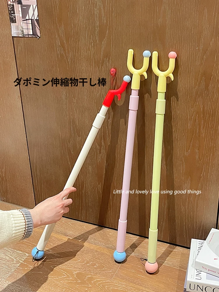かわいい伸縮式衣類ハンガー、学生寮に最適!洗濯物を楽々干せる衣叉付き、収納もスッキリ!おしゃれで便利な掛けるスタイル、衣類の整理整頓に最適です。