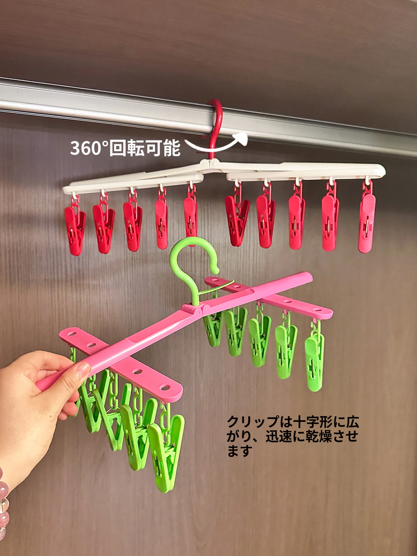 多機能洗濯バサミ付き衣類干しラック - バルコニーや自宅で大活躍!学生向け、下着や靴下もおしゃれに干せる便利アイテム!