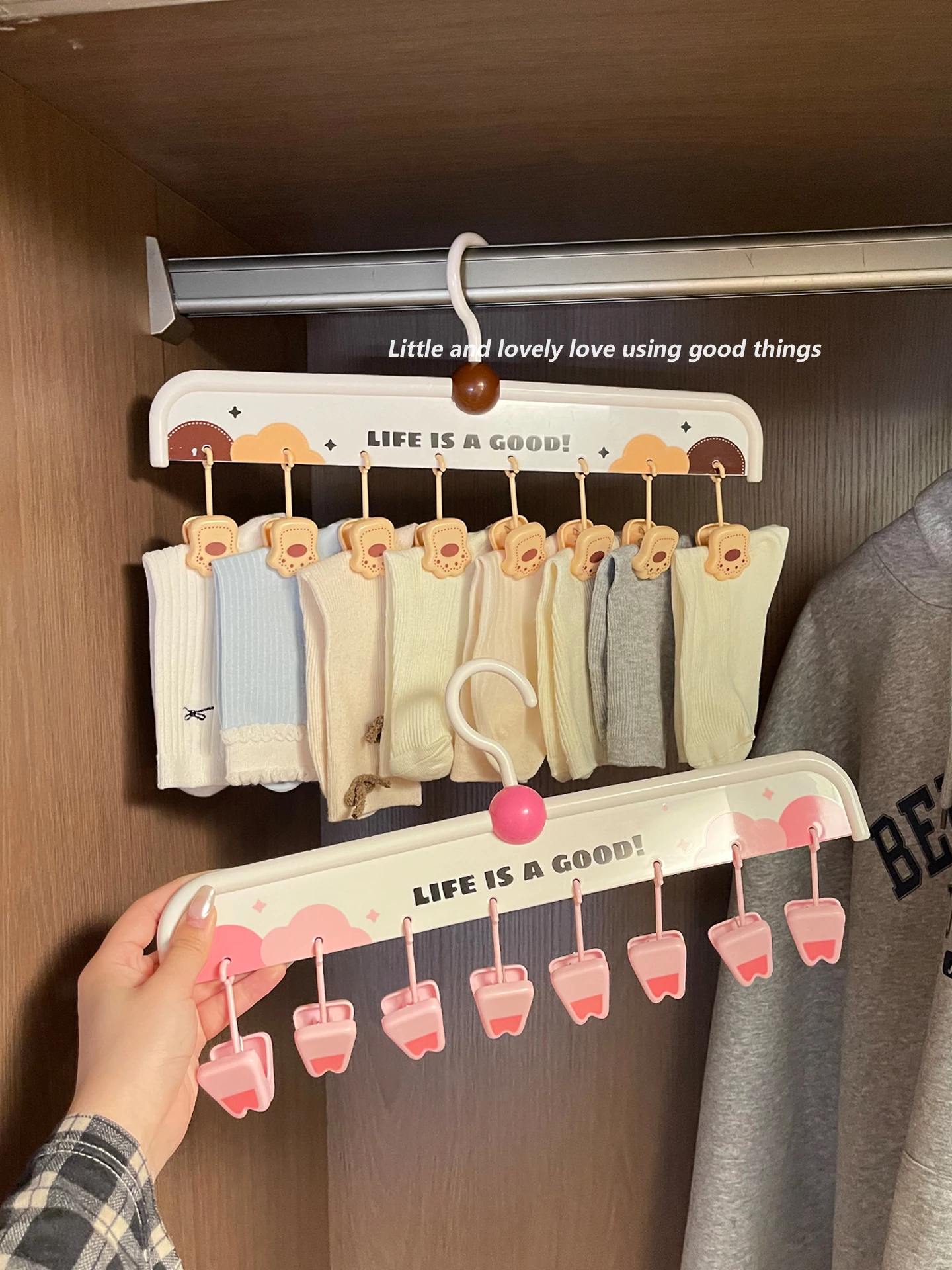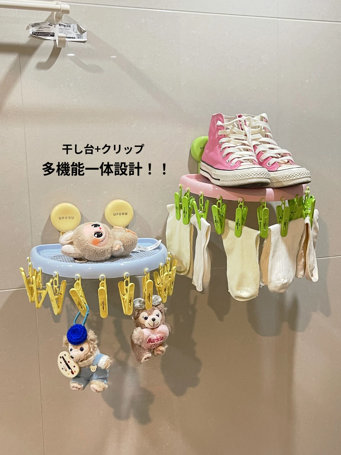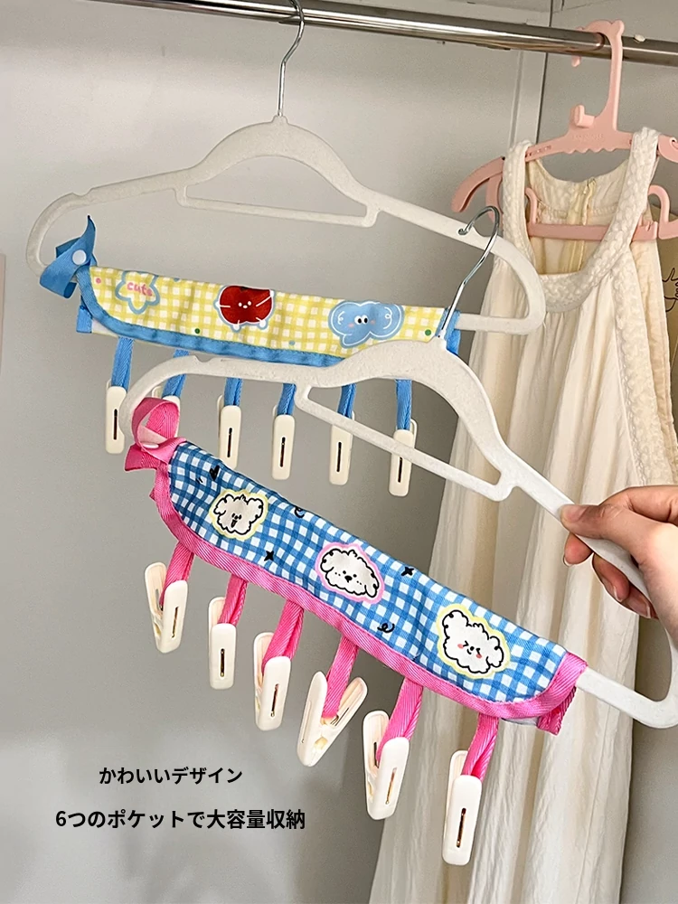 学生必見!多機能クリップ付き靴下干しハンガー - 下着や靴下をしっかりつかんで、スペースを節約しながら効率的に乾燥!寮生活を快適にする、おしゃれで実用的なアイテムです。