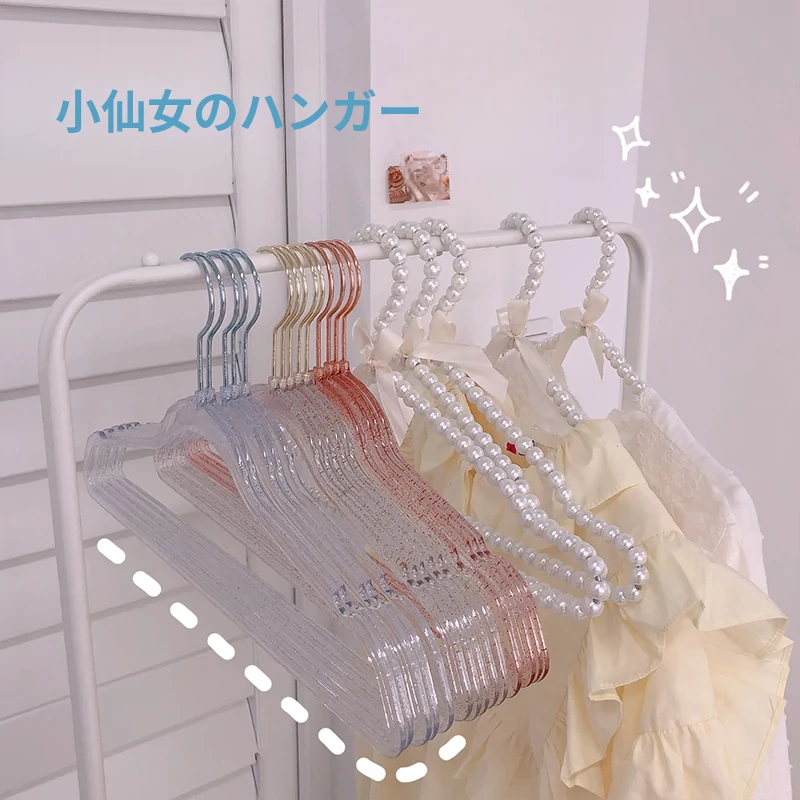 インスタ映え!少女心をくすぐるフェイクパールのキラキラハンガー - おしゃれな衣類収納&干し物サポート、パンツ用クリップ付き!お部屋を可愛く演出する必需品!