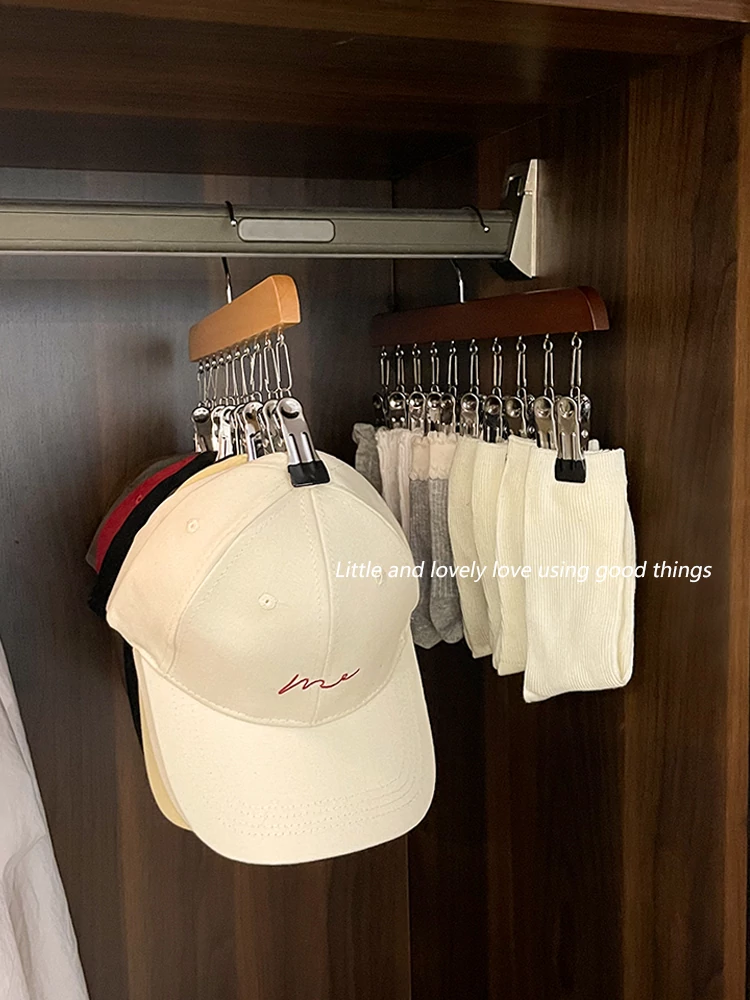 レトロシンプルな多機能天然木製ハンガー - 家庭用バルコニーの洗濯ハンガー、寮用クローゼット、帽子や靴下の収納ラックに最適!スタイリッシュで実用的な収納アイテムを手に入れましょう!