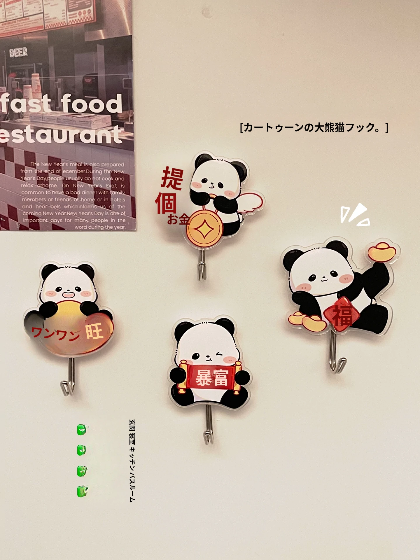 可愛いパンダフック!強力粘着でキッチンのスプーンやヘラをしっかり支える!無痕で穴あけ不要、壁を傷めずにおしゃれに収納!