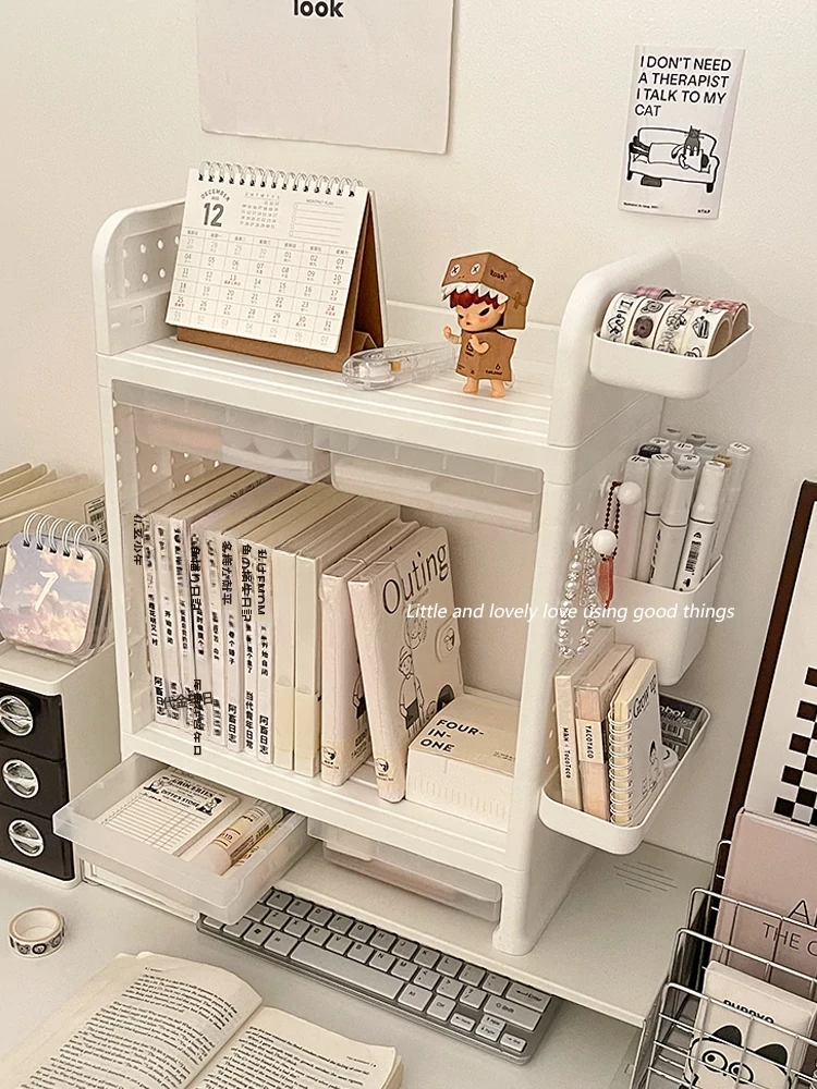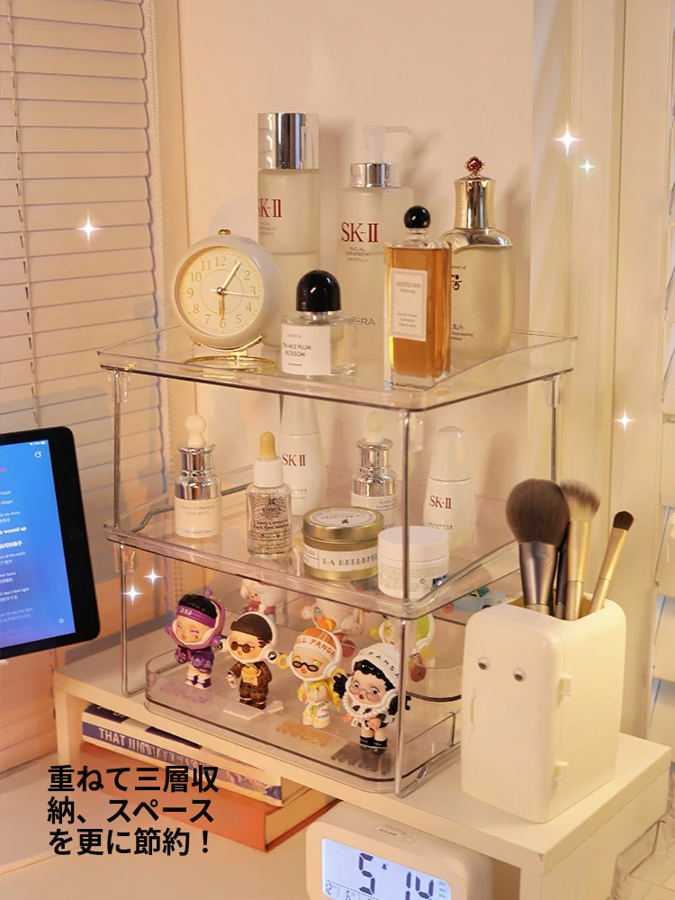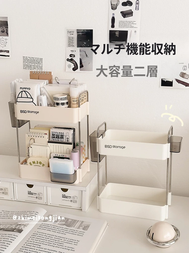 シンプルでおしゃれなデスク収納ラック|学生向け・インスタ映え・寮生活・化粧品・文房具・小物整理に最適な多段式収納ボックス!あなたのスペースをすっきりと整えるアイテムです。