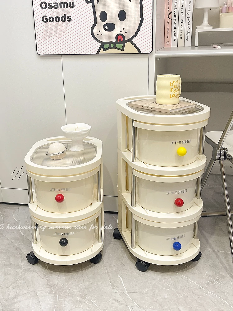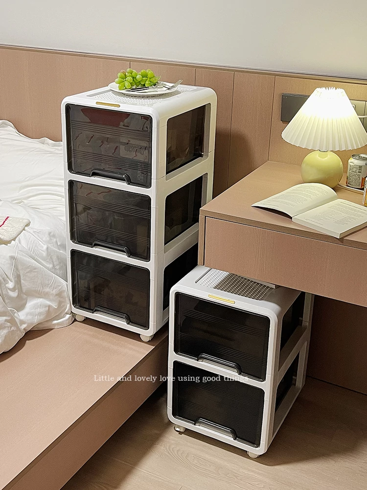 防塵小型ワゴン収納ラック|寝室やベッドサイドに最適!移動可能な多層収納ボックス|引き出し式で便利な収納スペース|お菓子や小物の整理にぴったり!