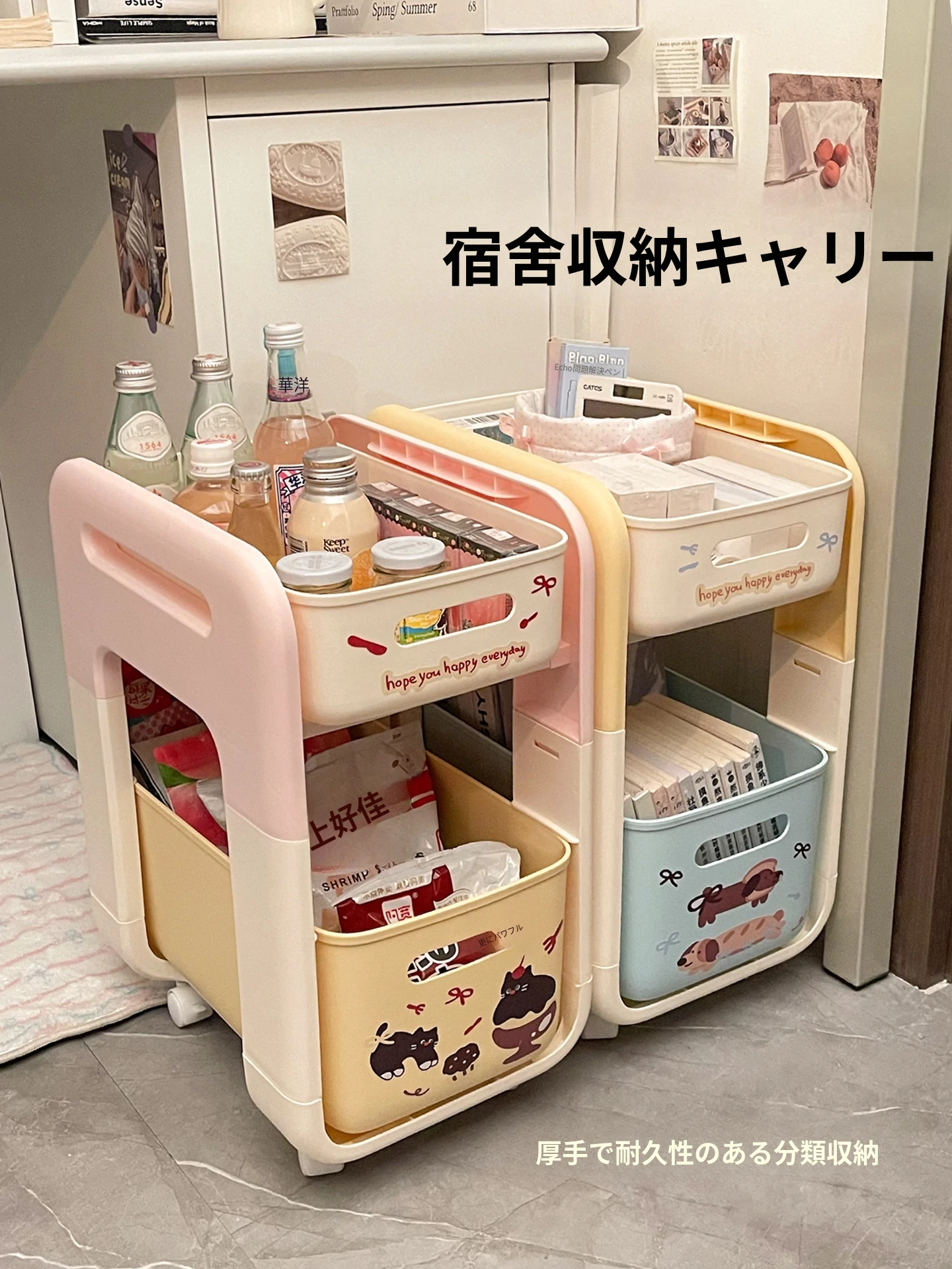多層収納カート - お菓子やおもちゃを整理整頓!キャスター付きで移動もラクラク、寮生活にぴったりな便利アイテム!