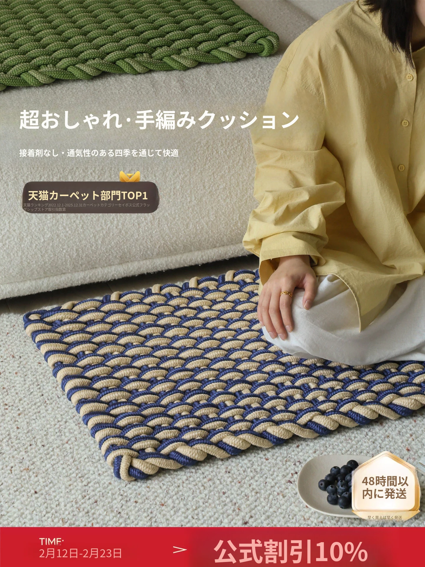 サイボスファッション 手作り編みクッションマット 四季使えるカーペット ベッドサイド・バルコニー・窓際マット お部屋のデコレーションに最適!