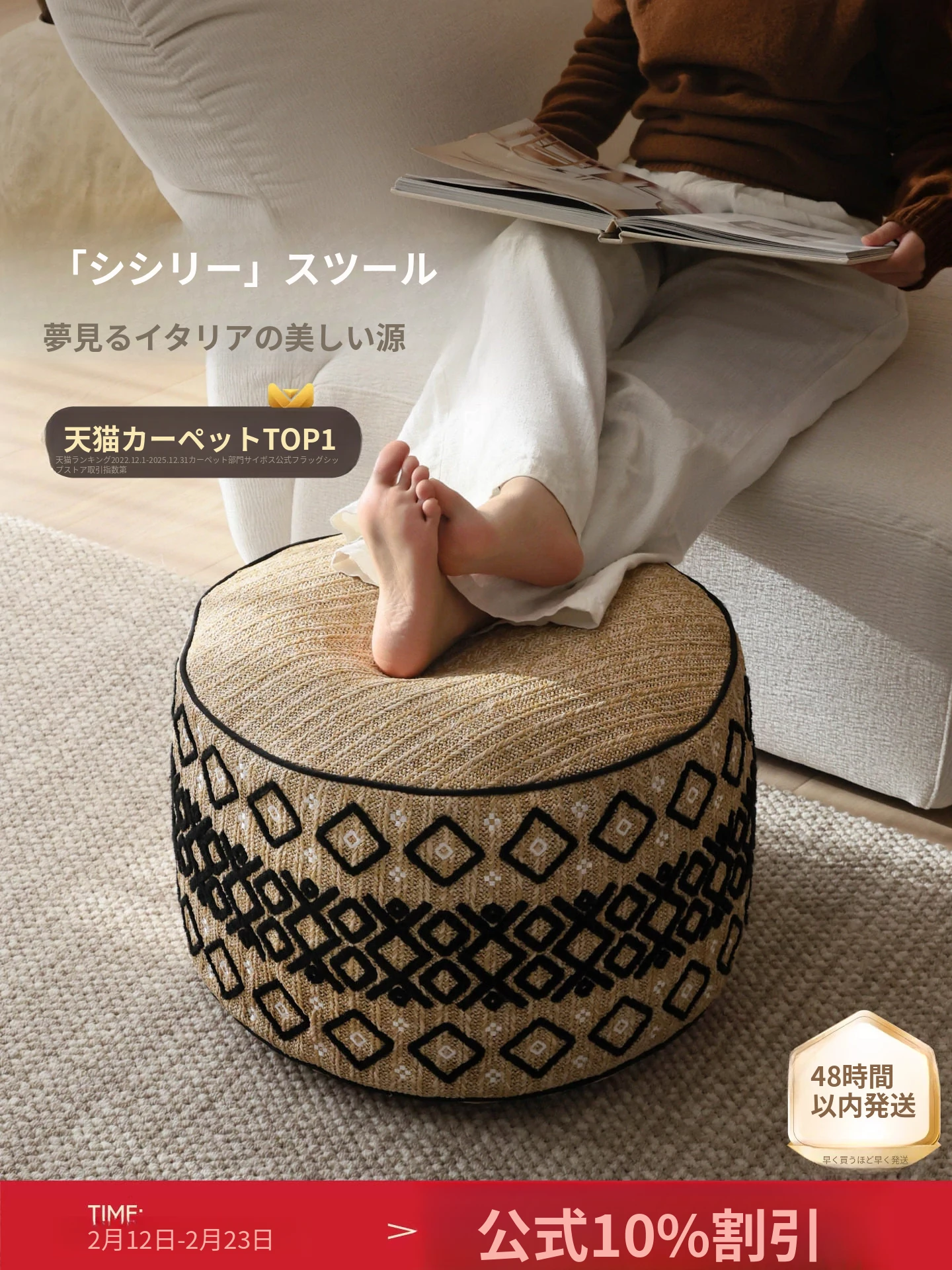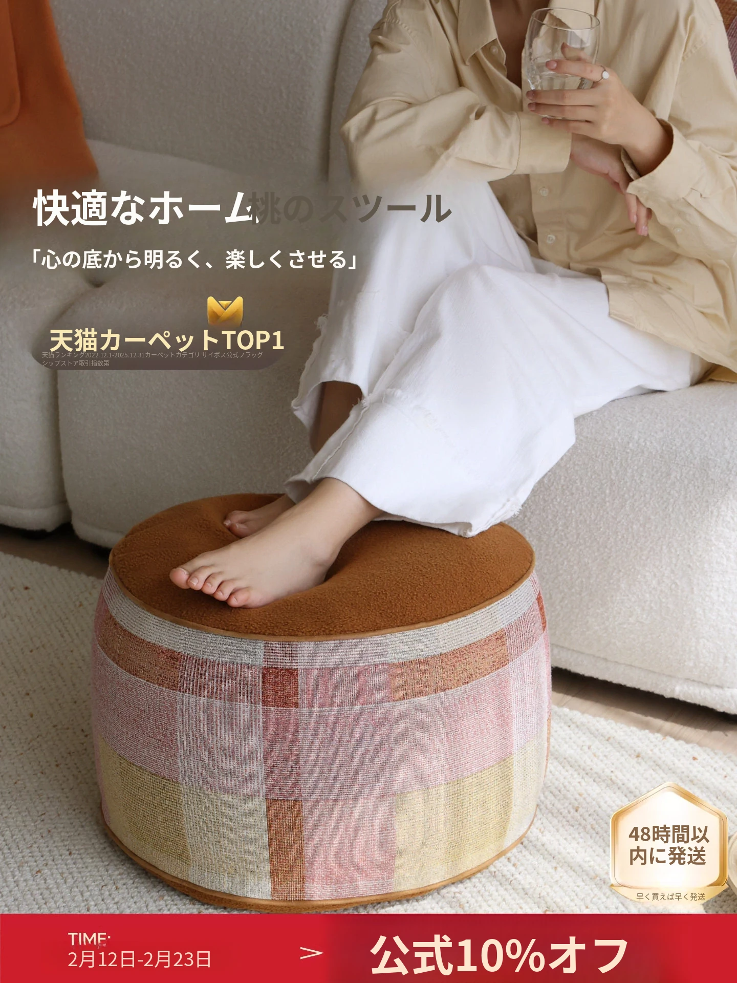 セイボス蜜桃クッションマット|取り外し可能でお手入れ簡単!高級感あふれるデザインのスツール|玄関・寝室・リビングに最適な軽やかさとスタイルを提供。