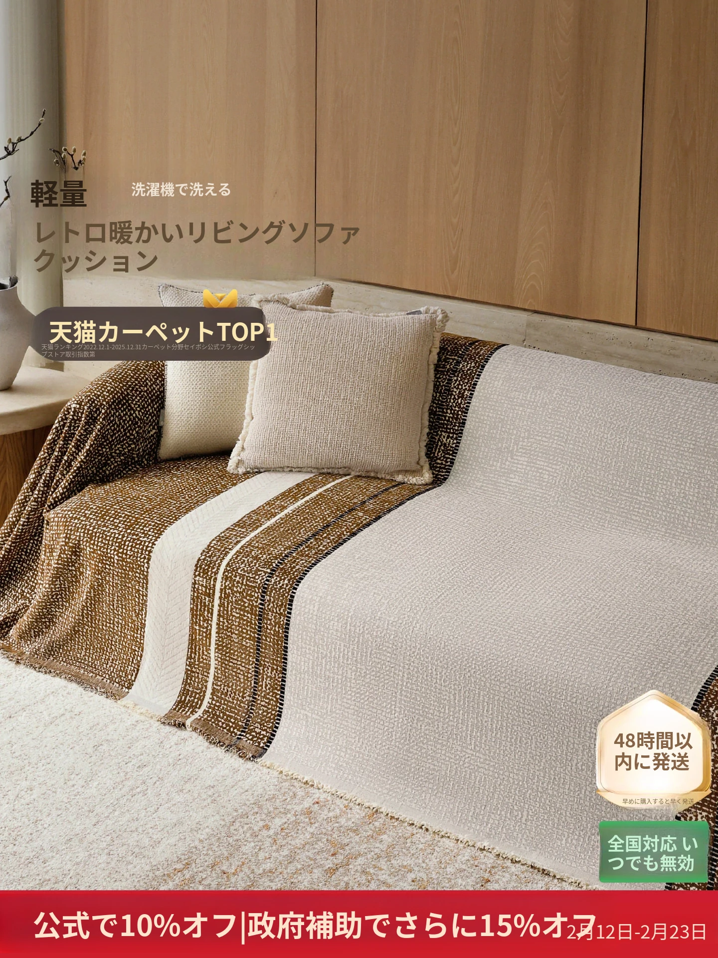 シンプルでレトロなデザインの厚手ソファカバー - リビングルームを全方位で包み込む!四季を通じて使える、全カバータイプのソファカバーでお部屋をおしゃれに演出!