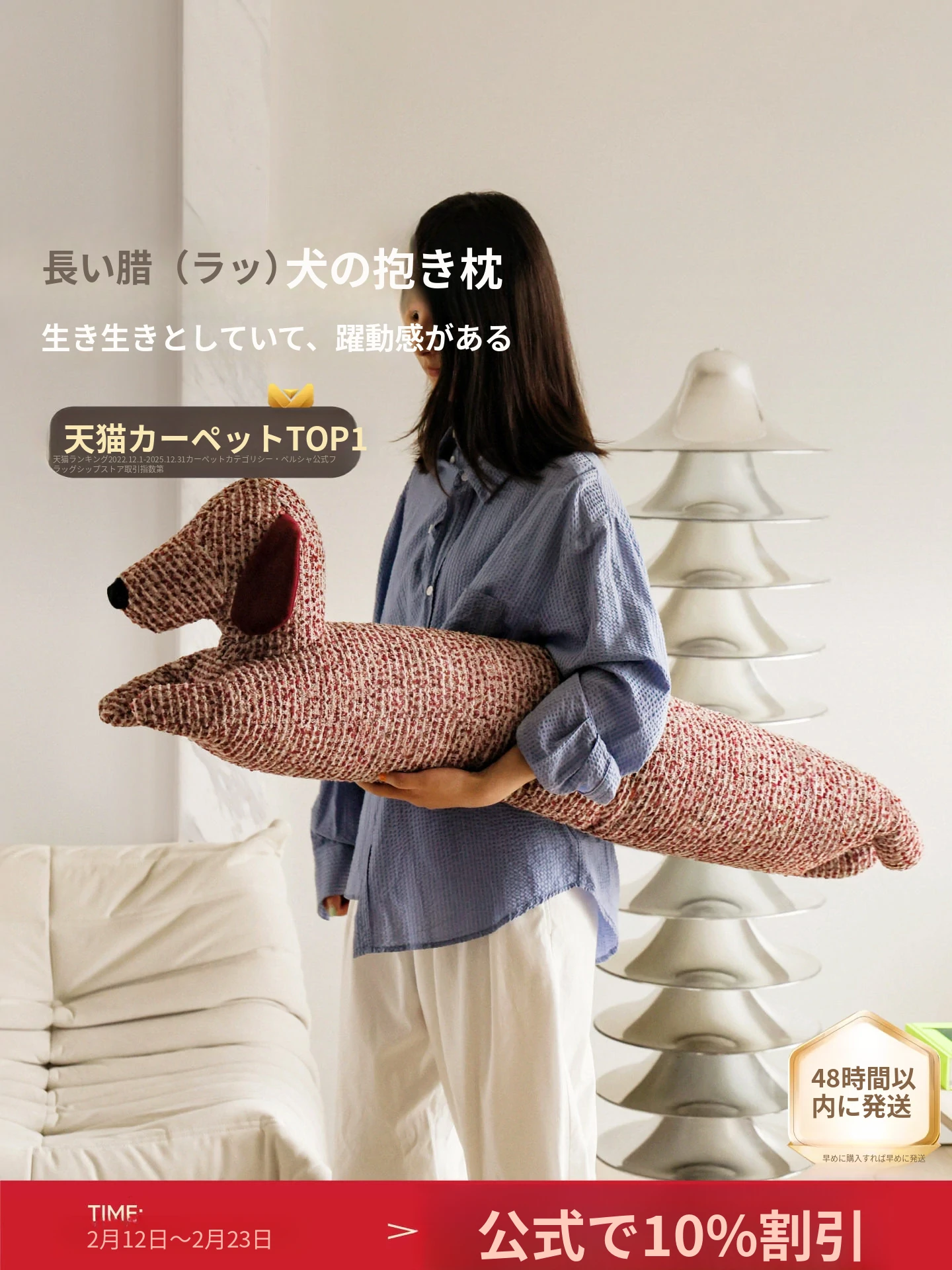かわいいサイボーグダックスフント抱き枕|高級キャラクタークッション|ロングタイプ腰枕|ベッドやソファにぴったり|寝る時やリラックスに最適な抱きしめたくなるお友達!