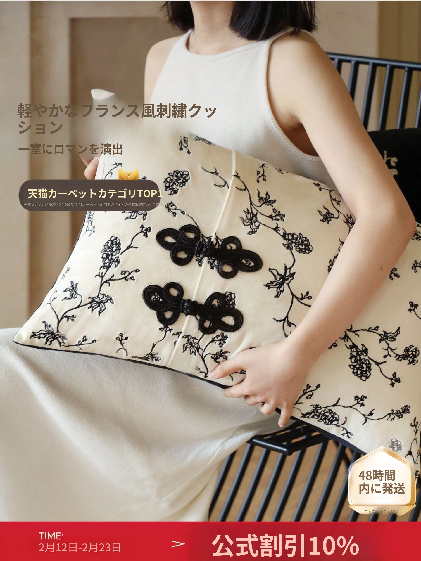 セイボスの夢、パリの抱き枕。エレガントな東洋スタイルのリビングカーペットとクッション。高級感あふれる重工刺繍で、青山の美宿のような洗練された空間を演出します。