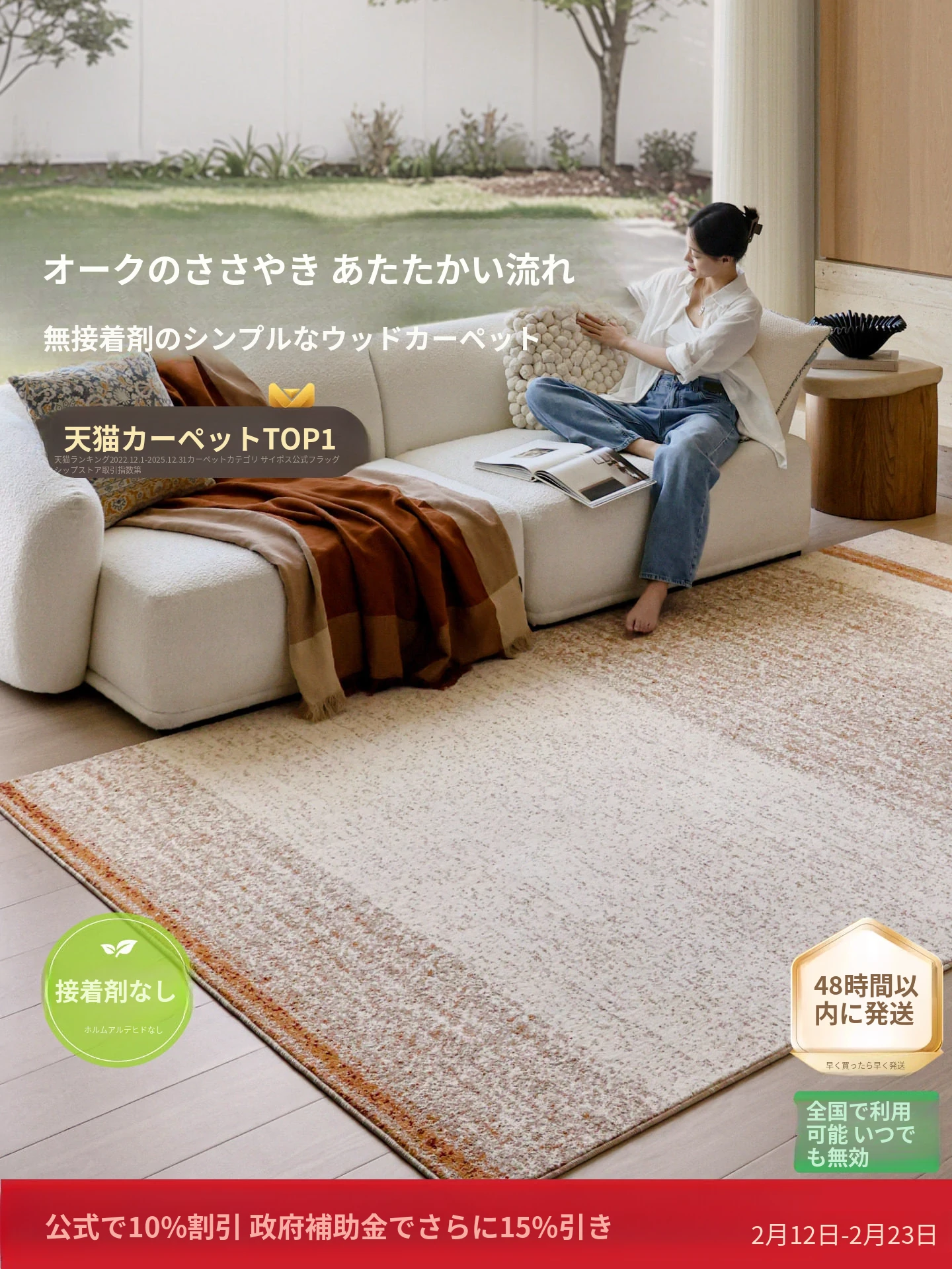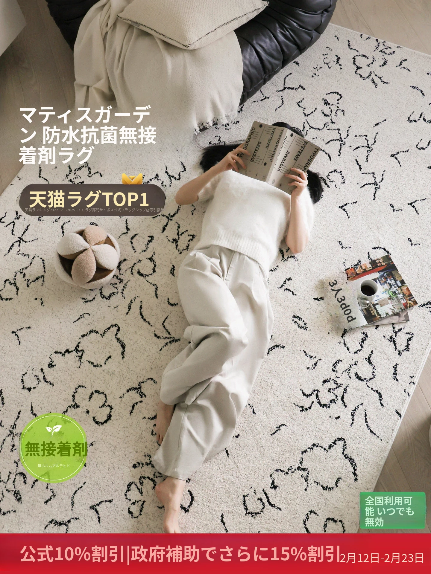 セイボス・マティス ガーデン 無接着剤カーペット リビング防水 抗菌 フレンチ南仏風 ハイエンド軽奢感 ベッドルームに最適!
