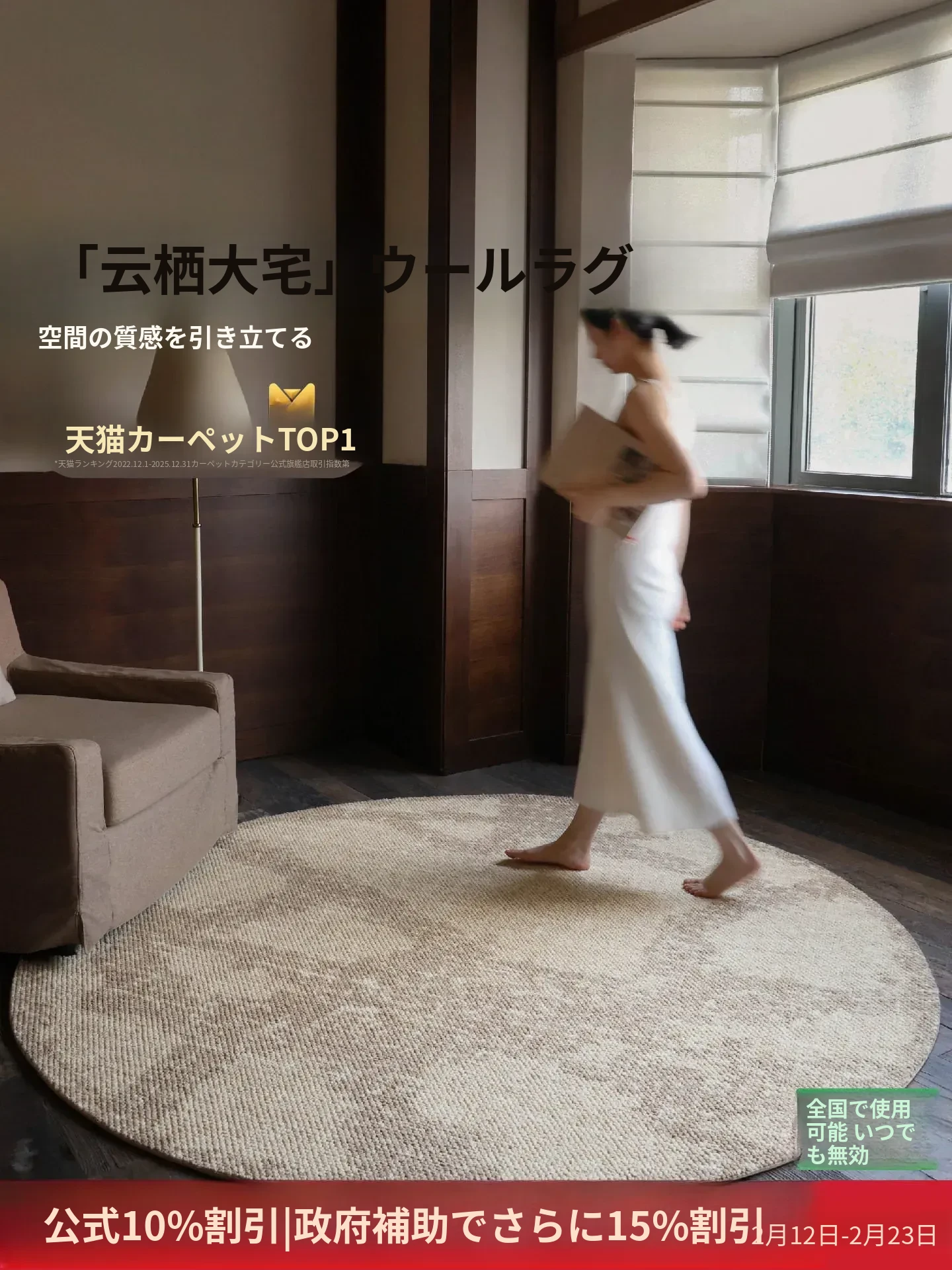 セイボスのスタイル選び!輸入ウールのラウンドカーペット、高級で軽やかなラグ、リビングルームや寝室のベッドサイドに最適!