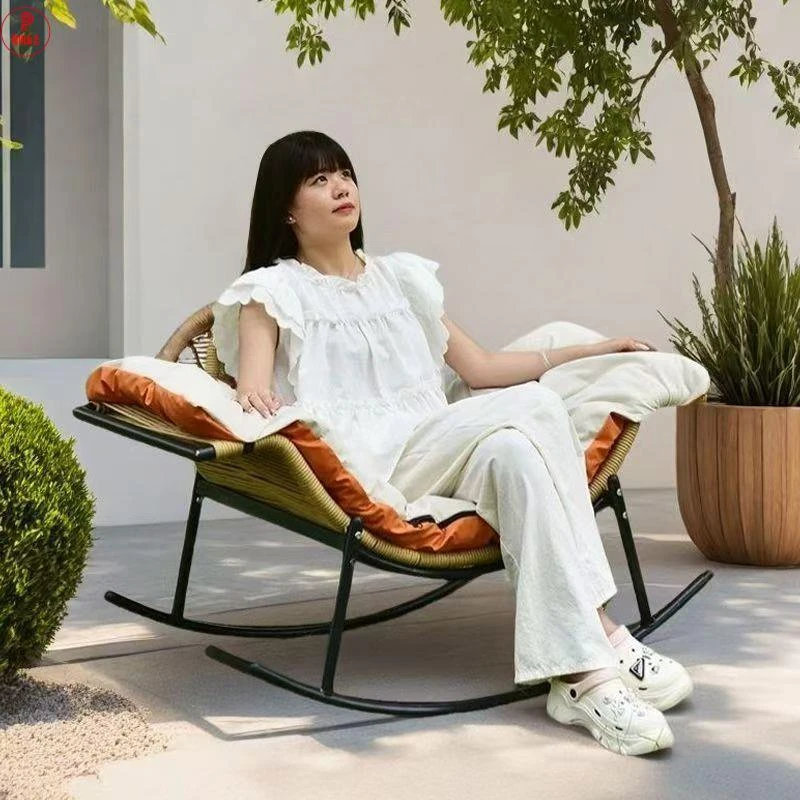 Outdoor Sunbathing Rocking Chair - Comfortable Rattan Lounge Chair for Home, Living Room, and Balcony - Perfect for Relaxing and Enjoying the Sunshine!