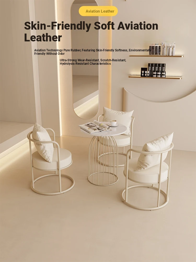 Creamy Aesthetic Balcony Table and Two Chairs Set - Stylish Reception Sofa Chairs for Beauty Salons, Trendy Three-Piece Lounge Furniture for Cozy Conversations and Relaxation