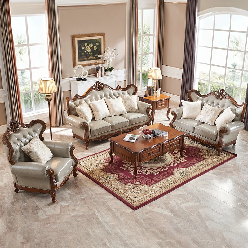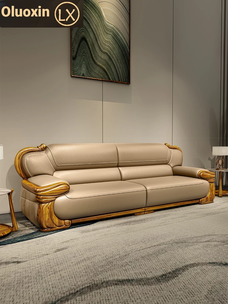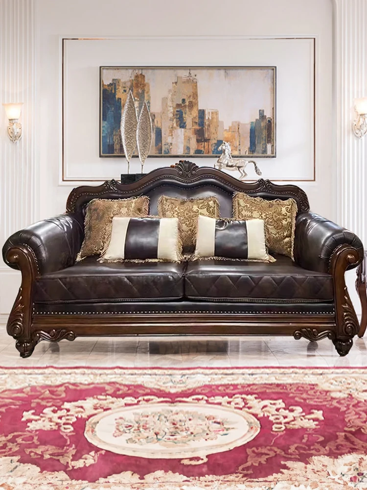 Luxurious American Solid Wood & Genuine Leather Sofa Set - New Classical European Style Living Room Furniture Combination