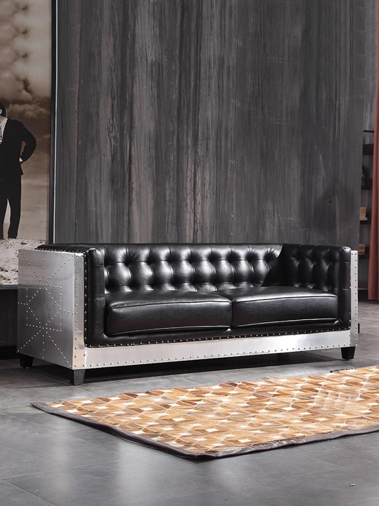 Vintage Retro Waxed Leather Sofa - Industrial Loft Style Aluminum Leather Creative Sofa - Genuine Leather for Club and Cigar Lounge Furniture