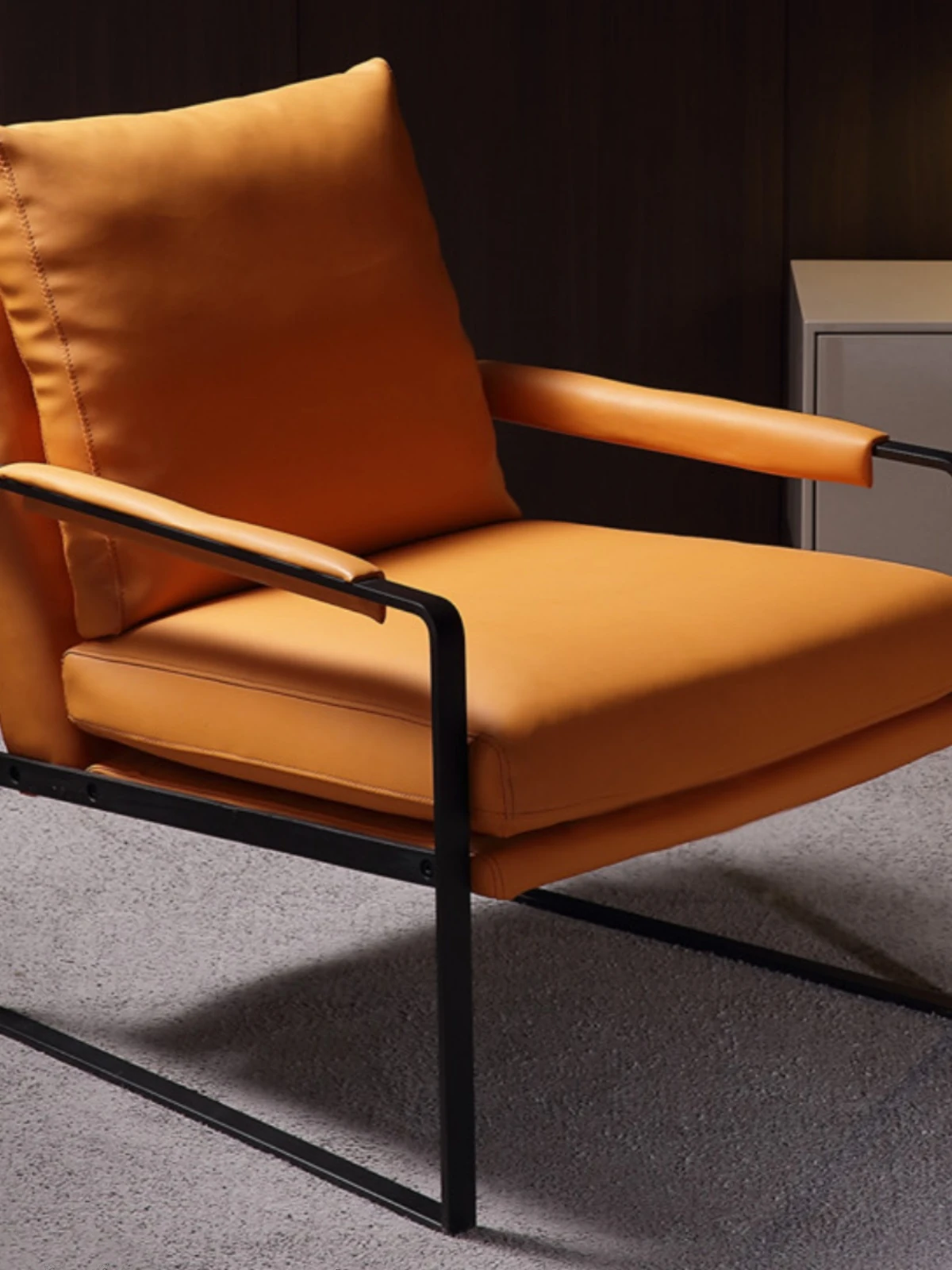 Scandinavian Style Single Leather Sofa Chair - Minimalist Modern Relaxation Seat for Reception Rooms, Creative Stainless Steel Light Luxury Armchair for Living Rooms