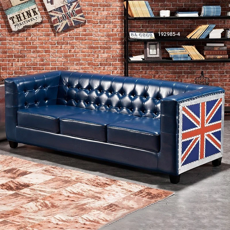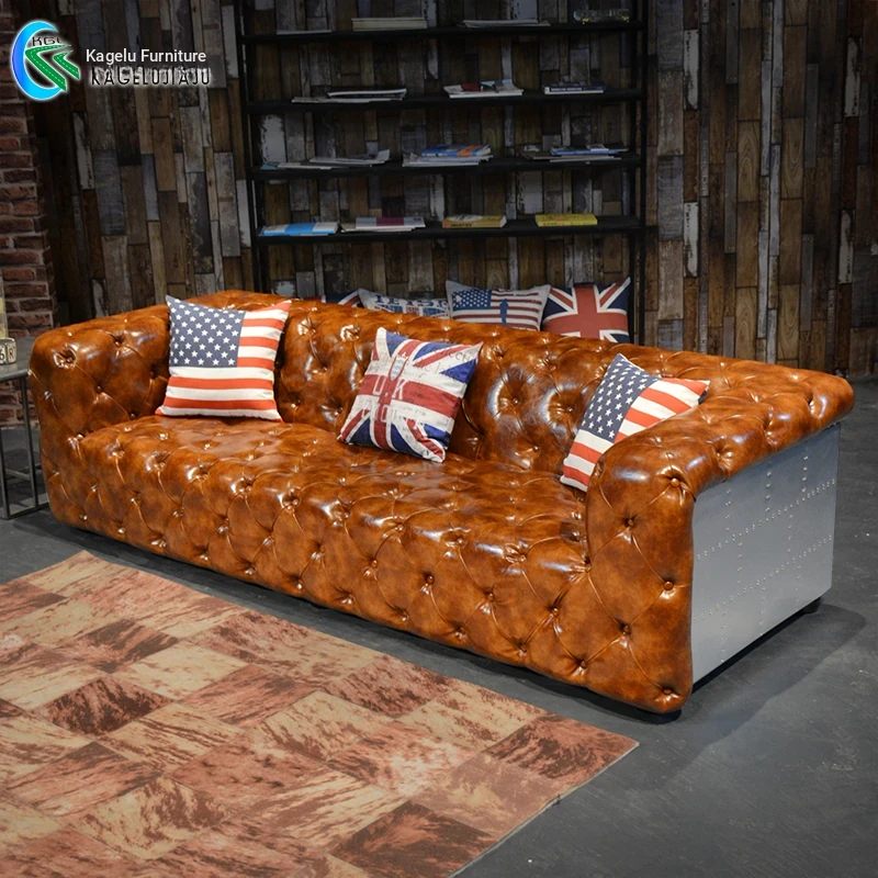 Vintage French Industrial Style Genuine Leather Sofa Set for KTV Bars and Cigar Lounges - Creative Lounge Area Aluminum Furniture