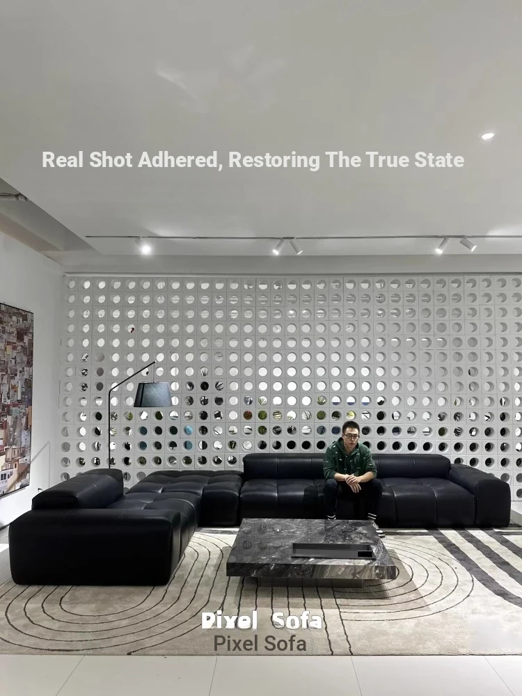 Saba Designer Pixel Leather Sofa - Italian Minimalist Modular Design in Premium Top-Grain Leather for Stylish Living Rooms