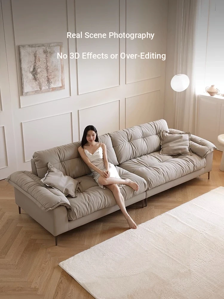 Creamy Cloud Sofa - French and Italian Minimalist Design, 3-Seater High Leg Full Leather Marshmallow Sofa by Aishen Furniture. Perfect for Elegant Living Spaces!