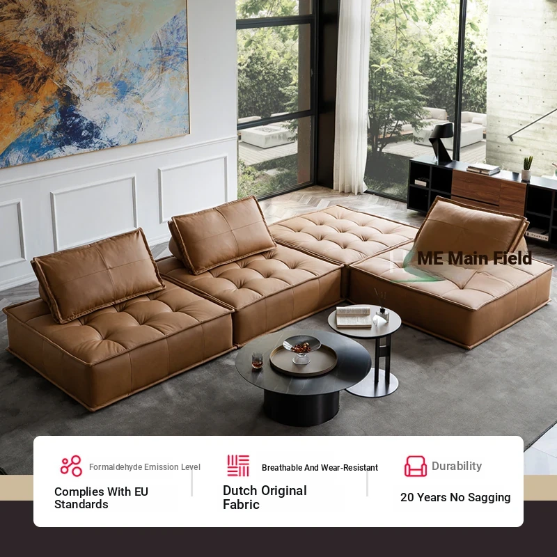 Italian Full Genuine Leather Sofa - Modern Minimalist High-End Modular Corner Couch for Spacious Villas – Stylish and Versatile Design for Luxurious Living Spaces
