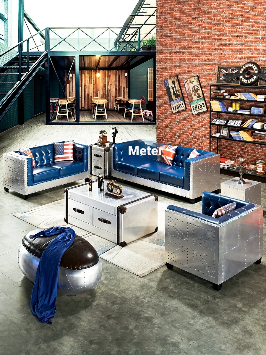 Vintage Waxed Leather American Industrial Style Sofa - Genuine Leather Cigar Bar & Pub Aluminum Punk Sofa - Unique Artistic Furniture for Stylish Spaces