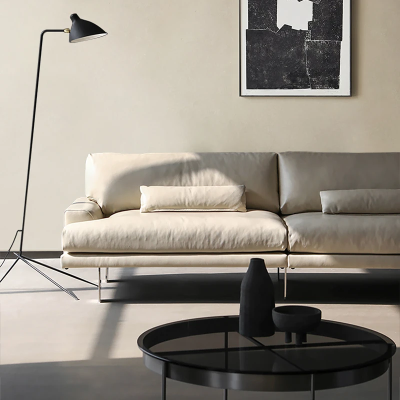 Nordic Style Italian Imported Top-Grain Leather Sofa - Minimalist Design for Living Room / Hardy Floating Sofa in Soft Ivory