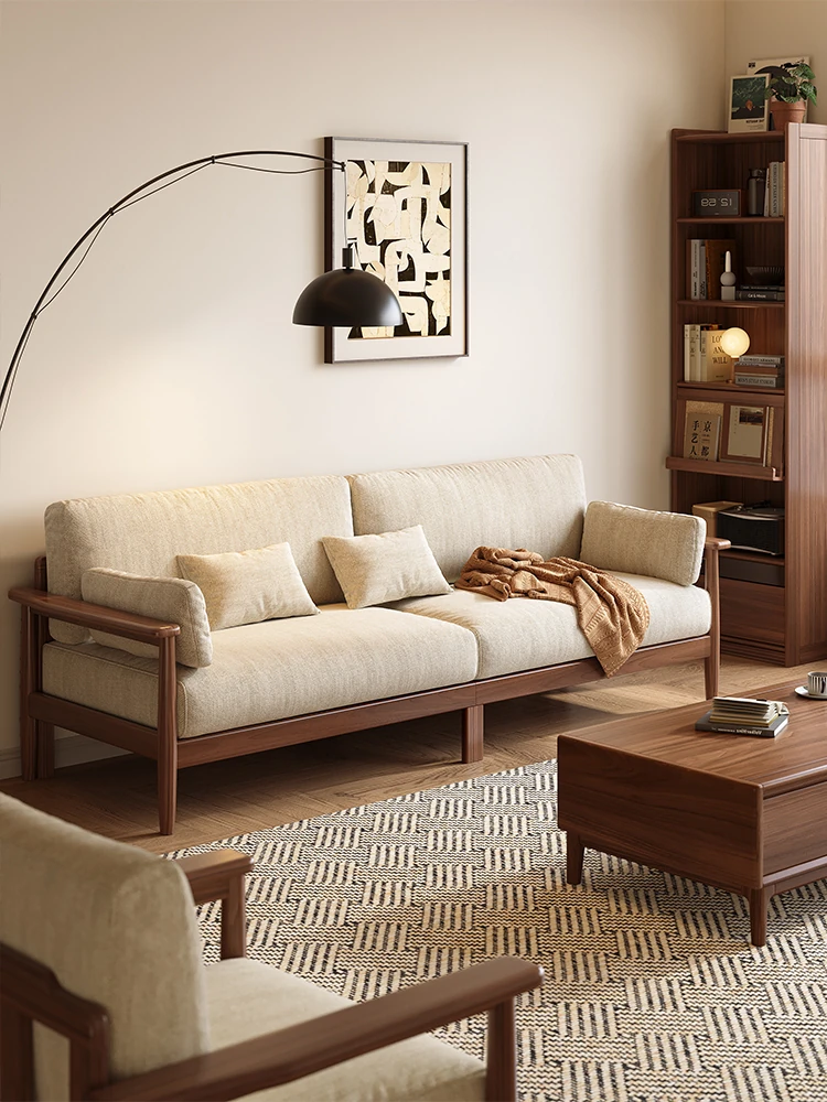 2025 New Chinese Style Solid Wood Sofa - Walnut Living Room Sofa for Small Spaces, Versatile Design for Winter and Summer Use, Straight-Line Sofa