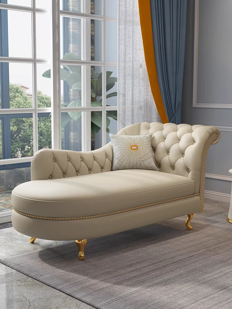 Modern American Luxury Chaise Lounge Chair - Ultra-Fine Leather, Perfect for Small Spaces, Ideal for Living Room and Bedroom, Elegant European Design, Comfortable Lazy Sofa for Relaxation.